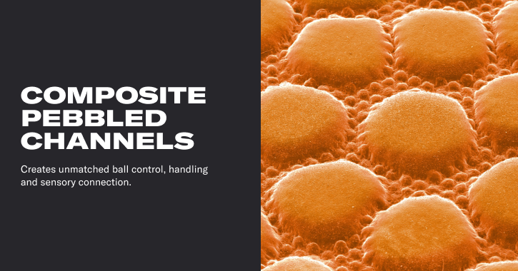 コンポジット表面のペブル加工は、手汗など湿気を排除、非常に優れた コントロールを提供すると同時に、グリップポイントを最大化させる