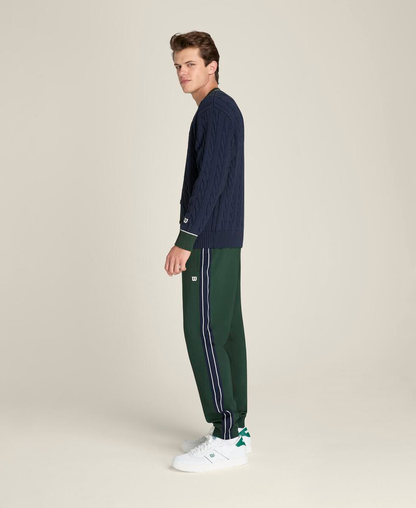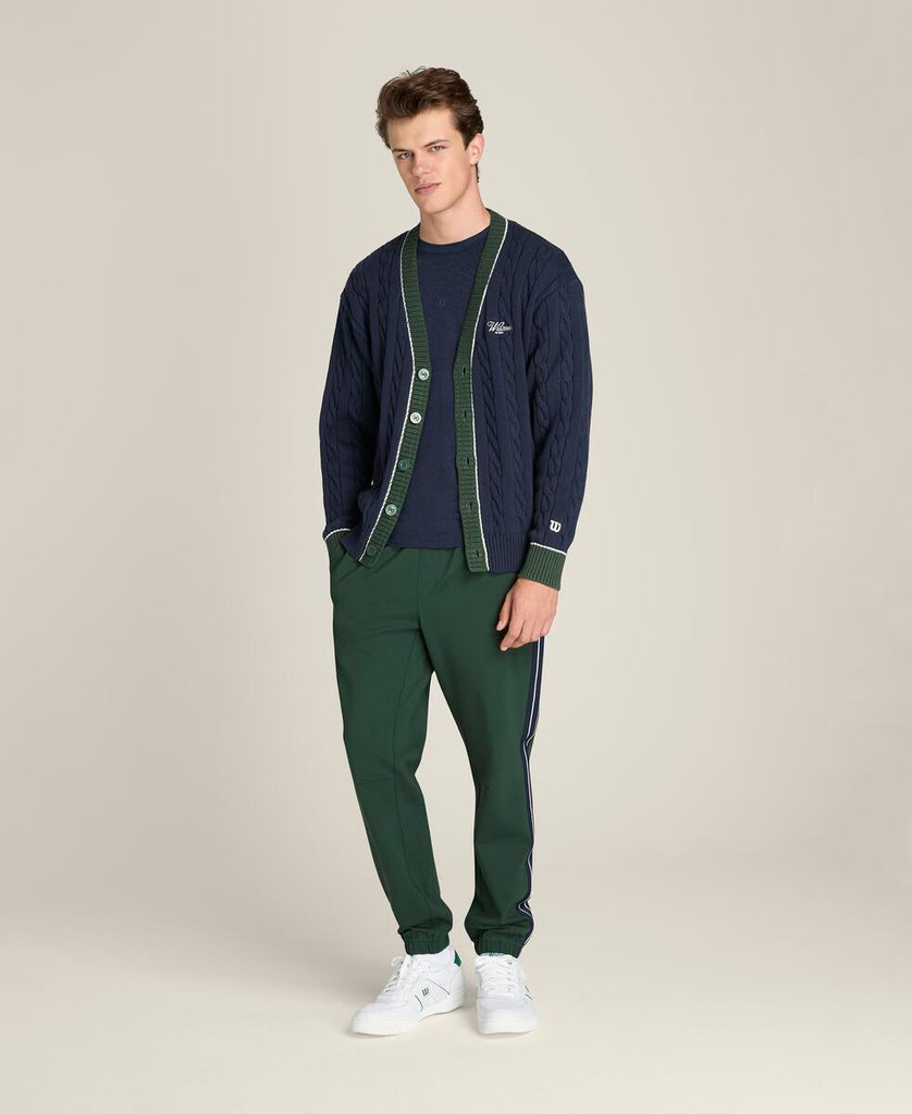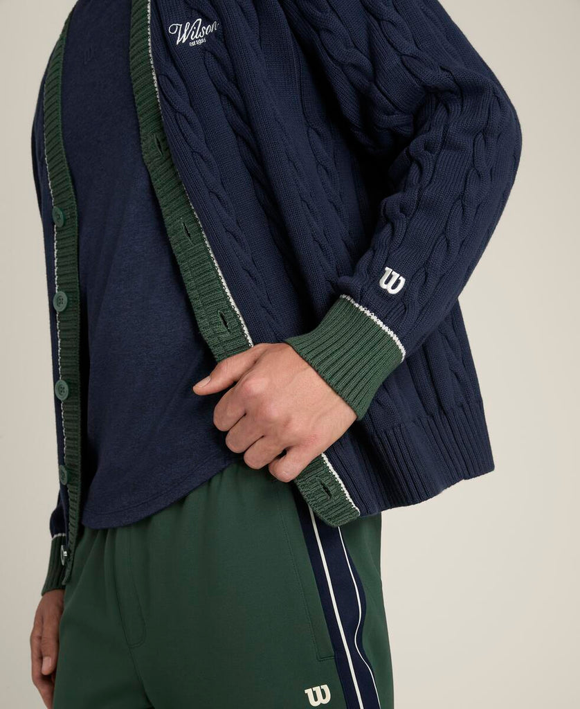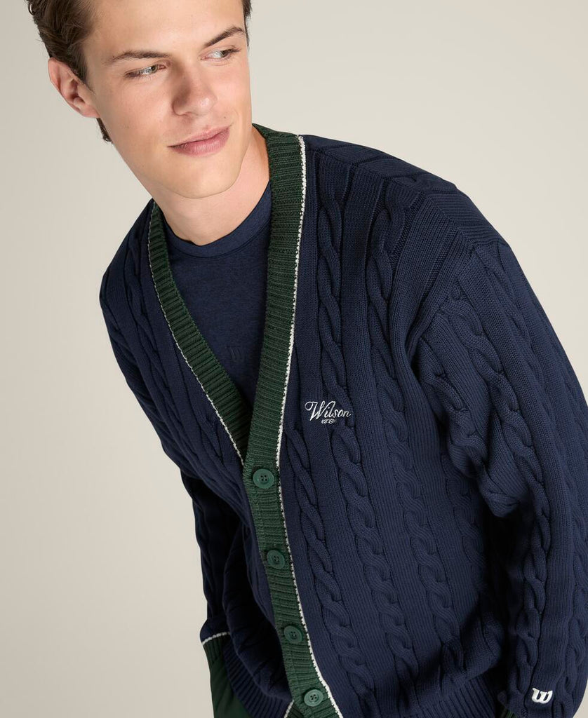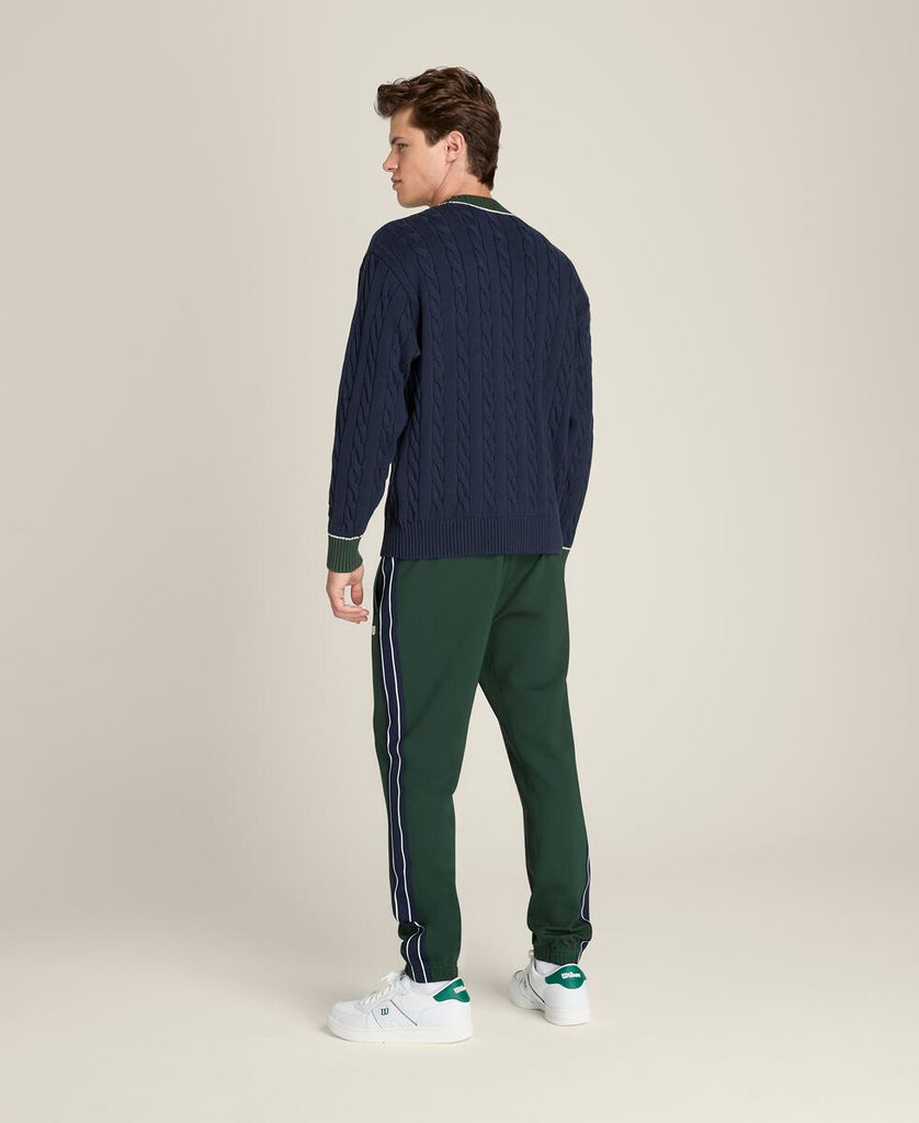 クラシックな上品さとモダンなシルエットを融合。やわらかなケーブルニット素材を使用し、テニスの伝統的な美学を感じさせる仕上がり。