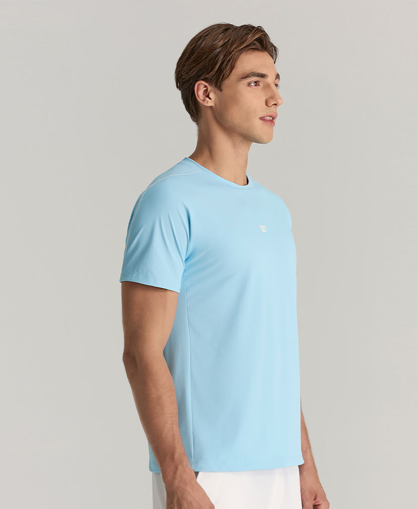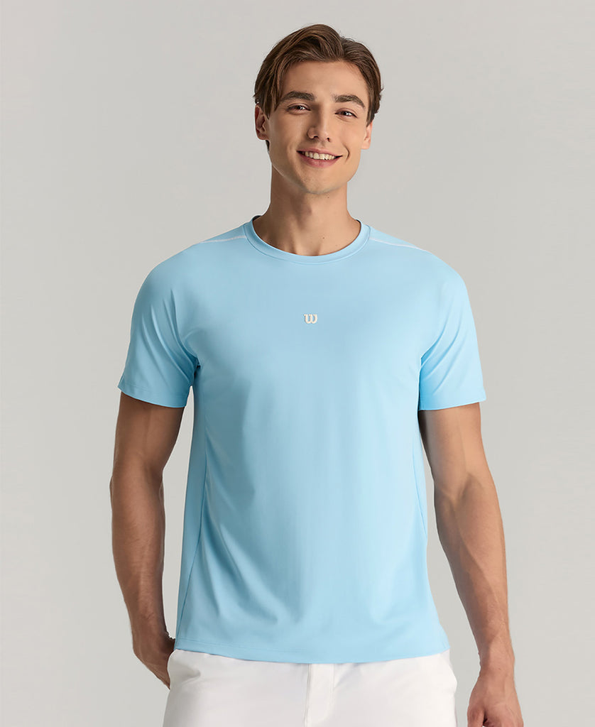 ストレッチ性に優れ、動きやすさを追求したクルーTシャツ。さらりとしたドライタッチで、汗をかいても快適な肌離れをキープ。