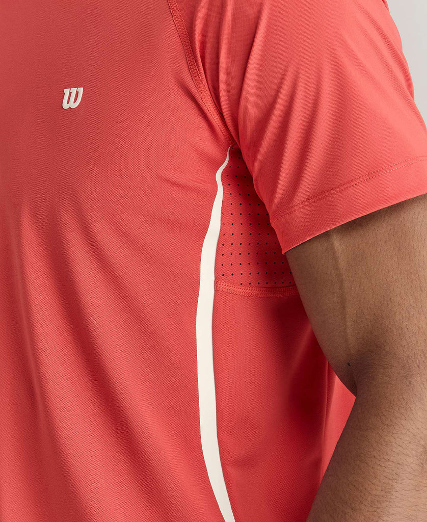 優れた通気性、速乾性と高いストレッチ性で動きやすさをサポートし、UVカット機能も備える。フラットシーム構造で肌当たりはスムーズ、脇下のパンチング加工が高温になりやすい部分を効果的に換気する。