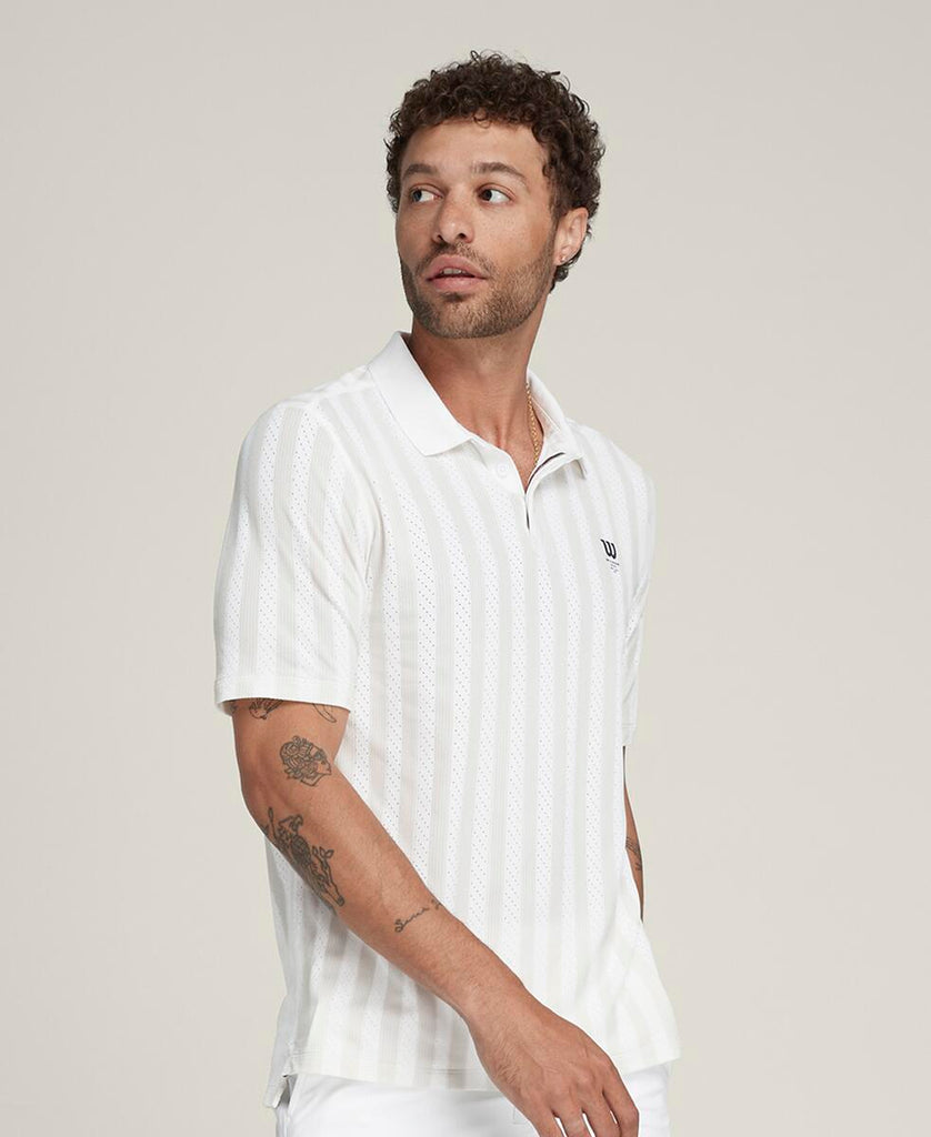 オンコートでの優れたパフォーマンスを引き出すためにデザインされたポロシャツ。タイムレスなスタイルを備えつつ、全面に配置したベンチレーションが、通気性と速乾性を保ち、快適な気心地をキープ。機能性を備えたストライプパターンが洗練された雰囲気を演出。