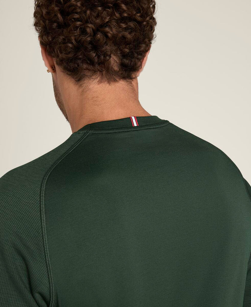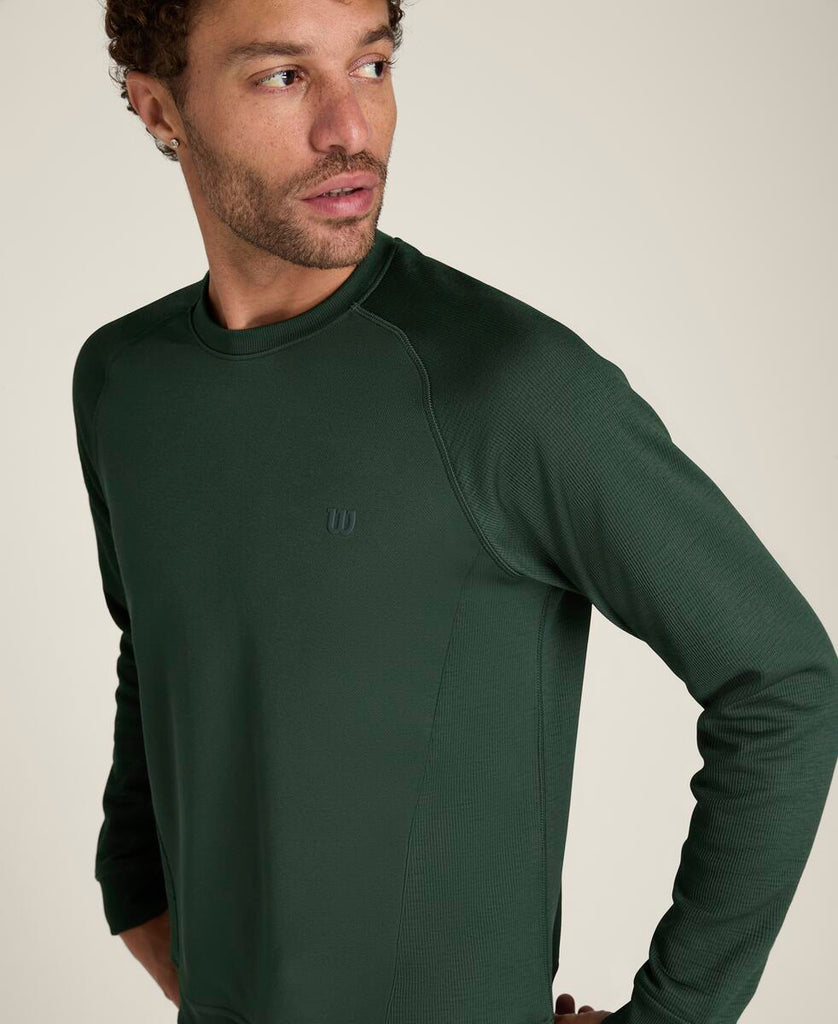 ワークアウト後の冷えを防ぎ、試合前のウォームアップに最適なレイヤー。 速乾性に優れ、特に汗をかきやすい部分を効果的に通気するテクニカルウール混素材で作られている。
