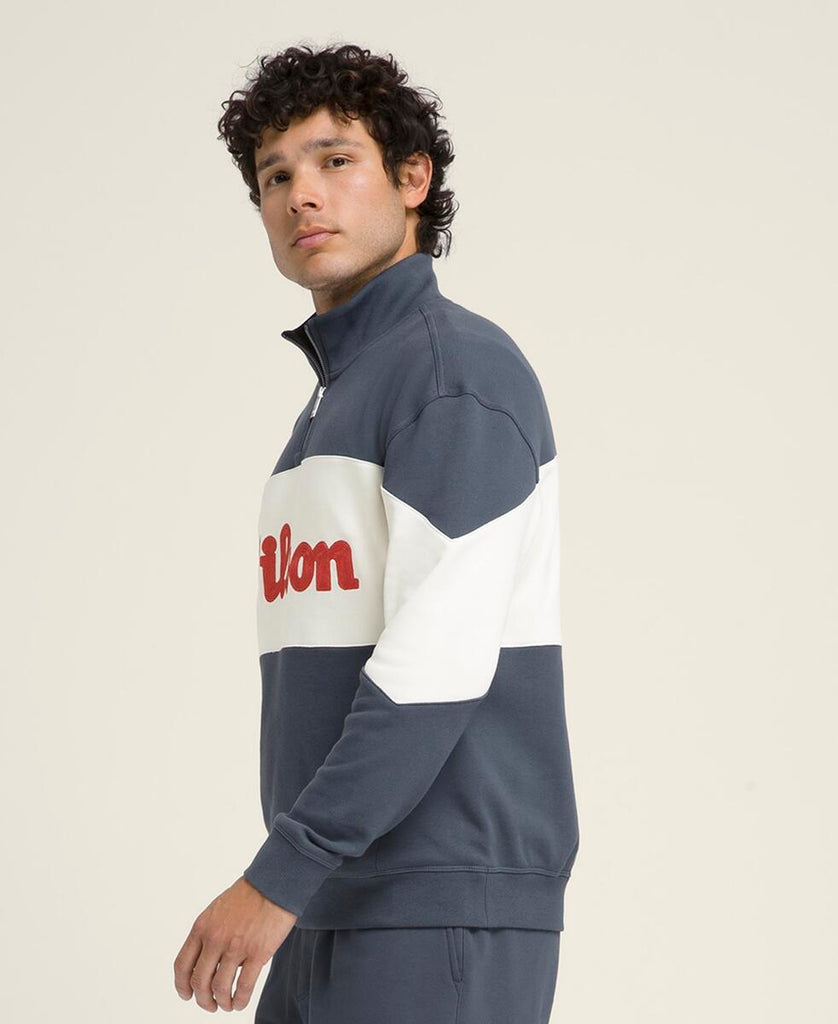 軽量なフレンチテリー素材は柔らかな肌触りで、重さを感じさせずに程よい暖かさをプラス。通気性と防臭機能を備えたハーフジップ。