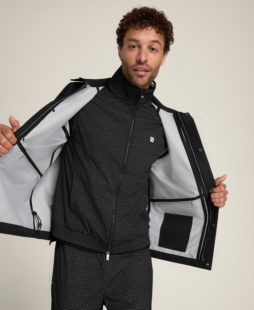 「コーチズジャケット」をWilson流に再解釈。コートサイドでの定番アイテムに、汗に強い機能性と撥水性のあるカバー力をプラス。練習や移動時はもちろん、クラブハウスや街中でも快適に着用可能。伝統的なスポーツの雰囲気を残しながらも、モダンな機能とデザインを融合した、タイムレスで実用的な一着。