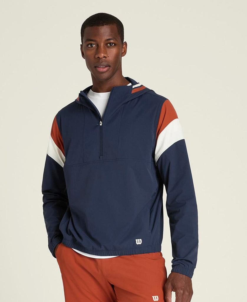 冷たい風や小雨にも負けないフード付きハーフジップジャケット。コートへの行き帰りなどに羽織る軽量レイヤーとしても最適で、ストレッチ性のある素材を使用。さらに、UVプロテクション機能を備え、メッシュのベンチレーションで通気性を確保。必需品を安心して収納できるジップポケット付。