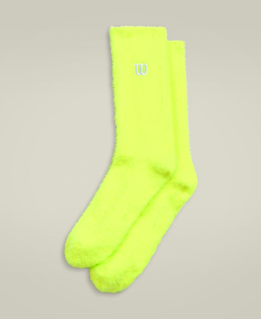 プレーヤーの日常に楽しさをプラスするファジーソックス。Wilsonのテニスボールから着想を得たデザインで、暖かいニット素材を使用し、足裏には滑り止め付き。刺繍のWロゴがさりげないアクセントに。