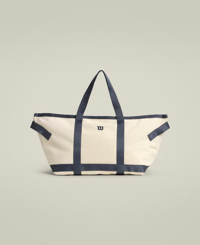 テニス用品をたっぷり収納できるクラシックトート。ボールやウェア、内側のジップポケットには貴重品を収納可能。前面の隠しポケットは、携帯電話や会員証など素早く取り出したい物に最適。