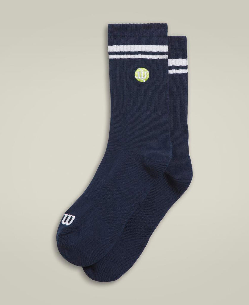 テニスや普段使いに最適なクッション入りクルーソックス。最大限のクッション性を持ち、足の中足部とアーチ部分にリブ編みのサポートがあり、長時間の試合や散歩でも快適な履き心地を提供。