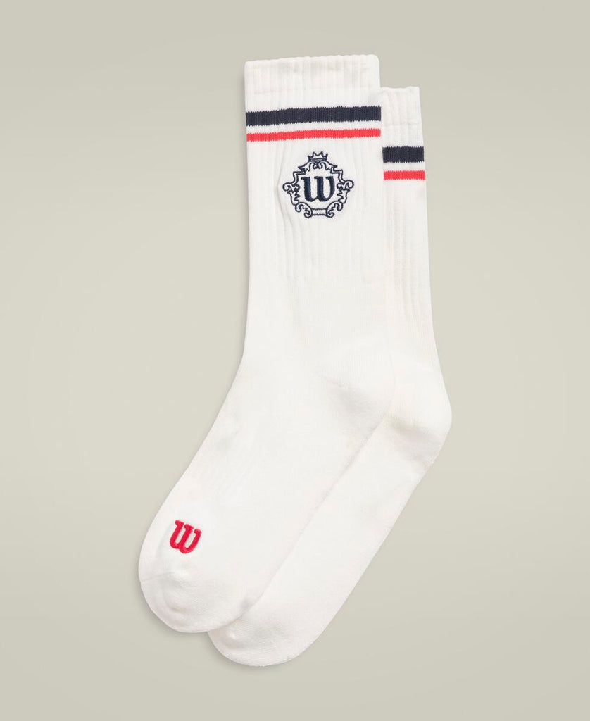 テニスや普段使いに最適なクッション入りクルーソックス。最大限のクッション性を持ち、足の中足部とアーチ部分にリブ編みのサポートがあり、長時間の試合や散歩でも快適な履き心地を提供。