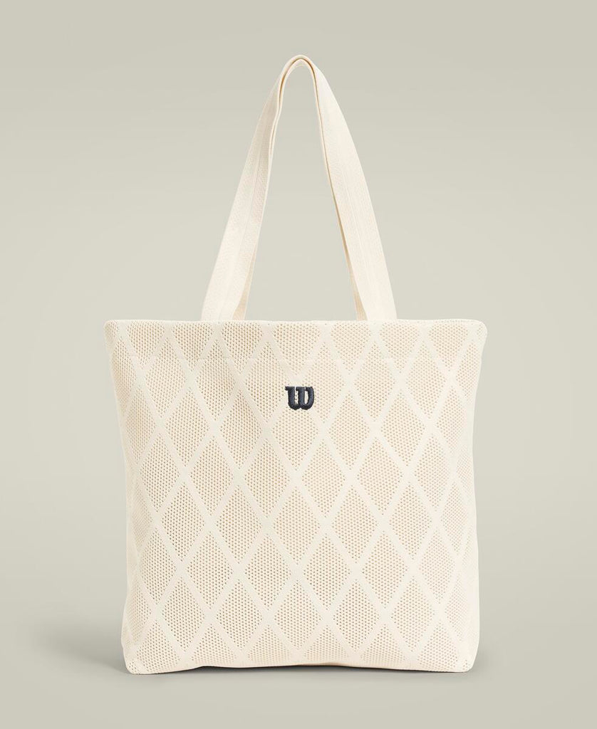 技術的なジャカードニットメッシュ素材とやわらかいメッシュストラップを使用したトートバッグ。必需品が入る全面裏地付きのメインコンパートメントと、小物収納に便利な内側ジップポケットを備えている。