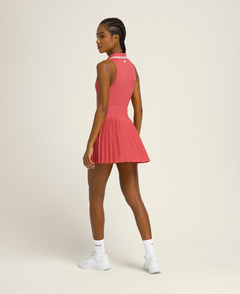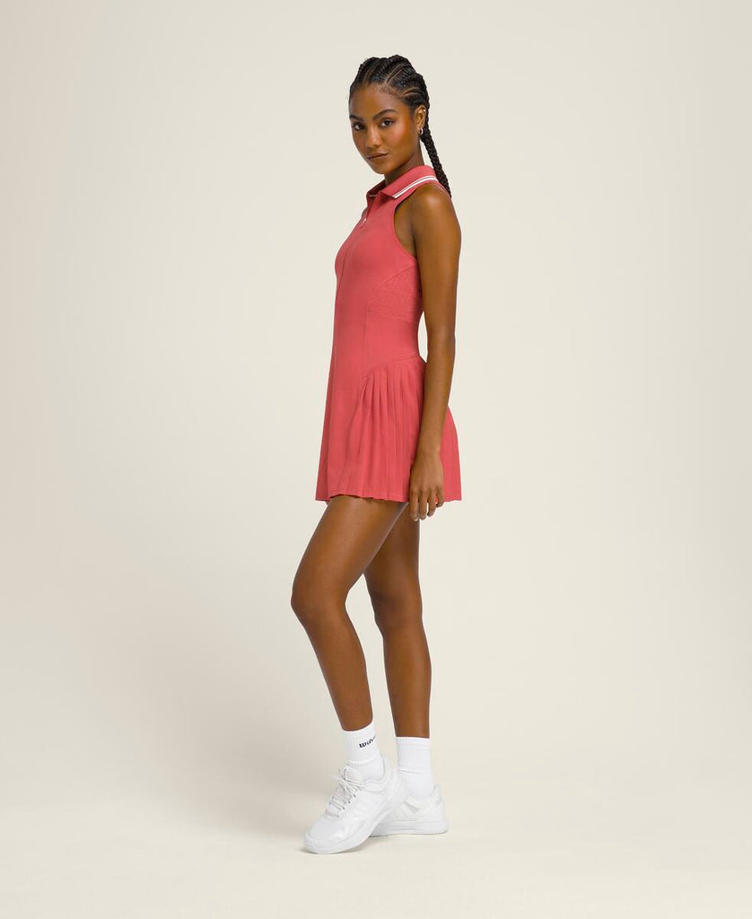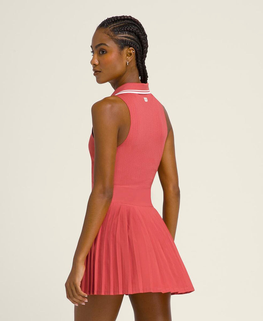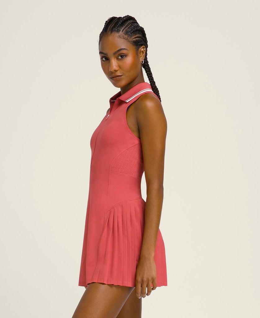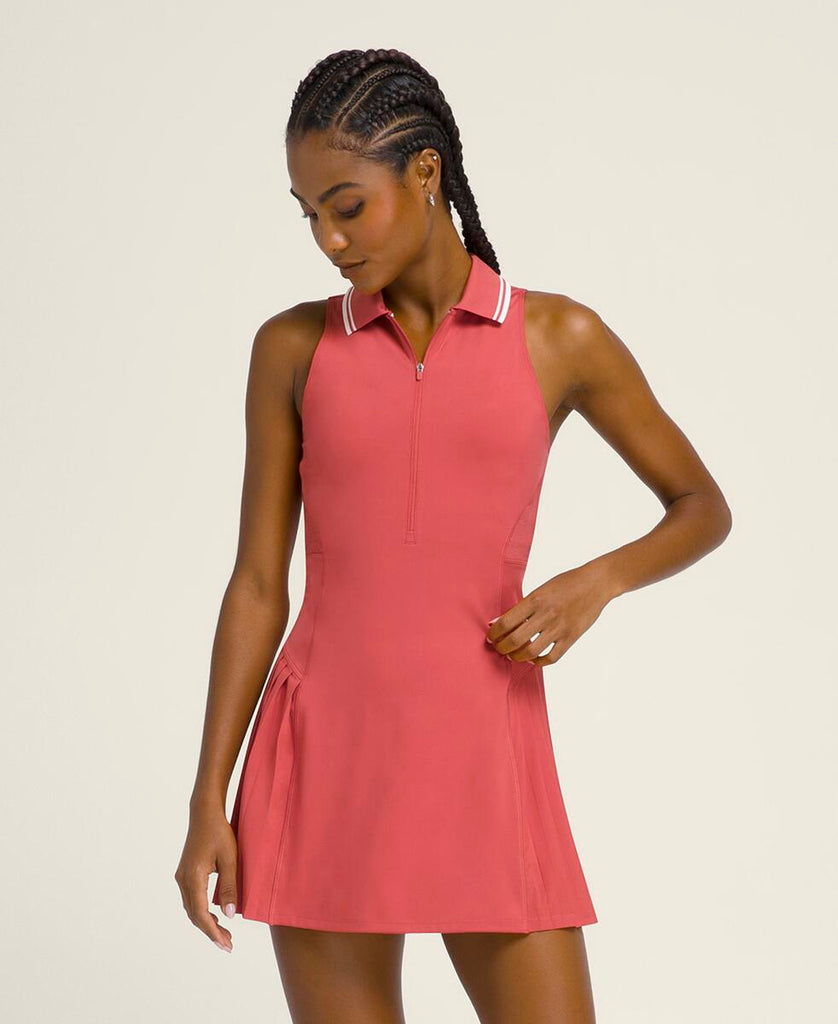 前面ジッパーと、背面から脇下へかけてのベンチレーションにより優れた通気性を確保。Aラインシルエットと襟元のデザインが特徴のクラシックなワンピース。
