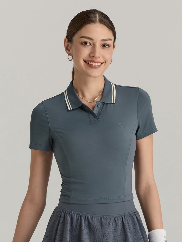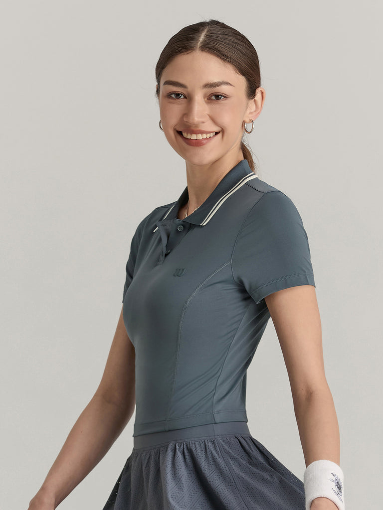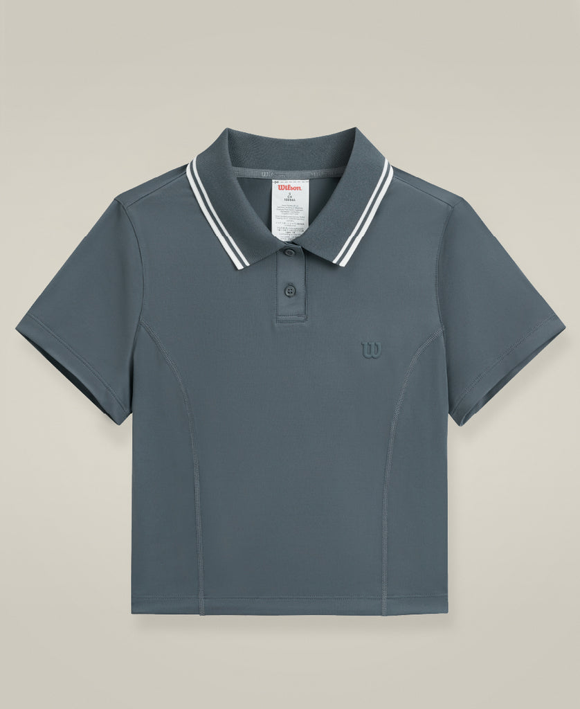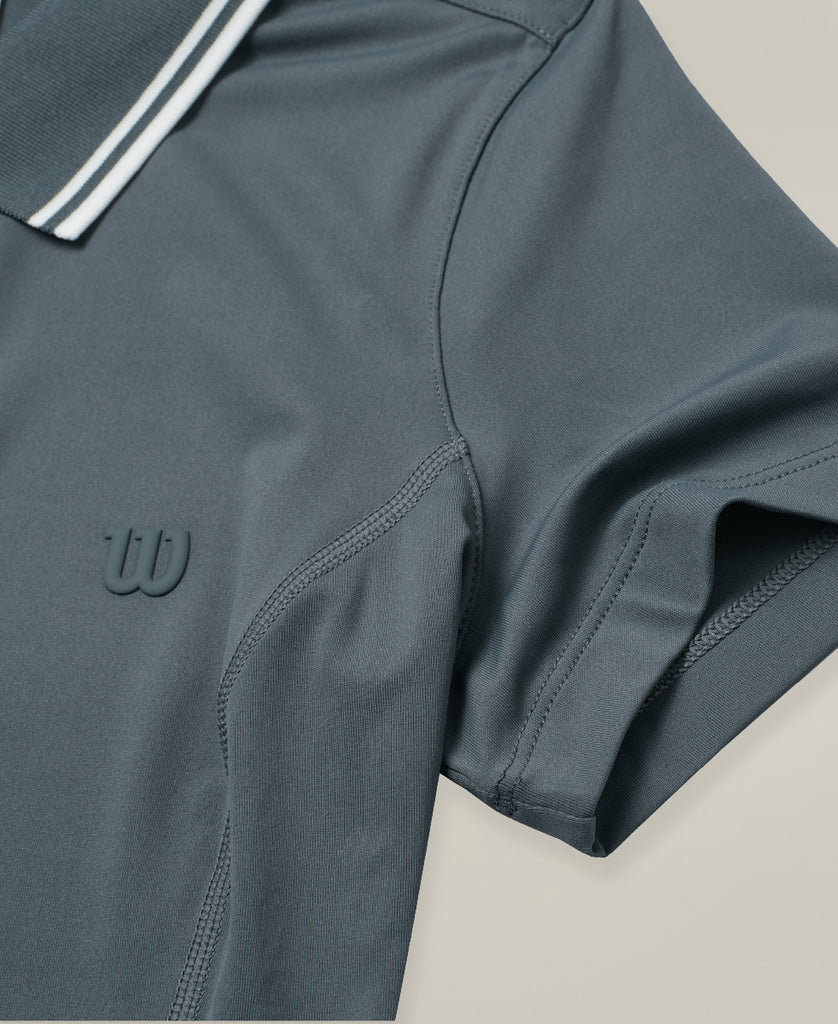 ドライな肌触りと優れた速乾性を備えたショート丈ポロ。ストレッチ素材と計算されたカッティングが動きをスムーズにサポート。スコートやワイドパンツとも好バランスで、襟裏のロゴテープとクラシックな襟元が、洗練されたスポーツエレガンスを演出。