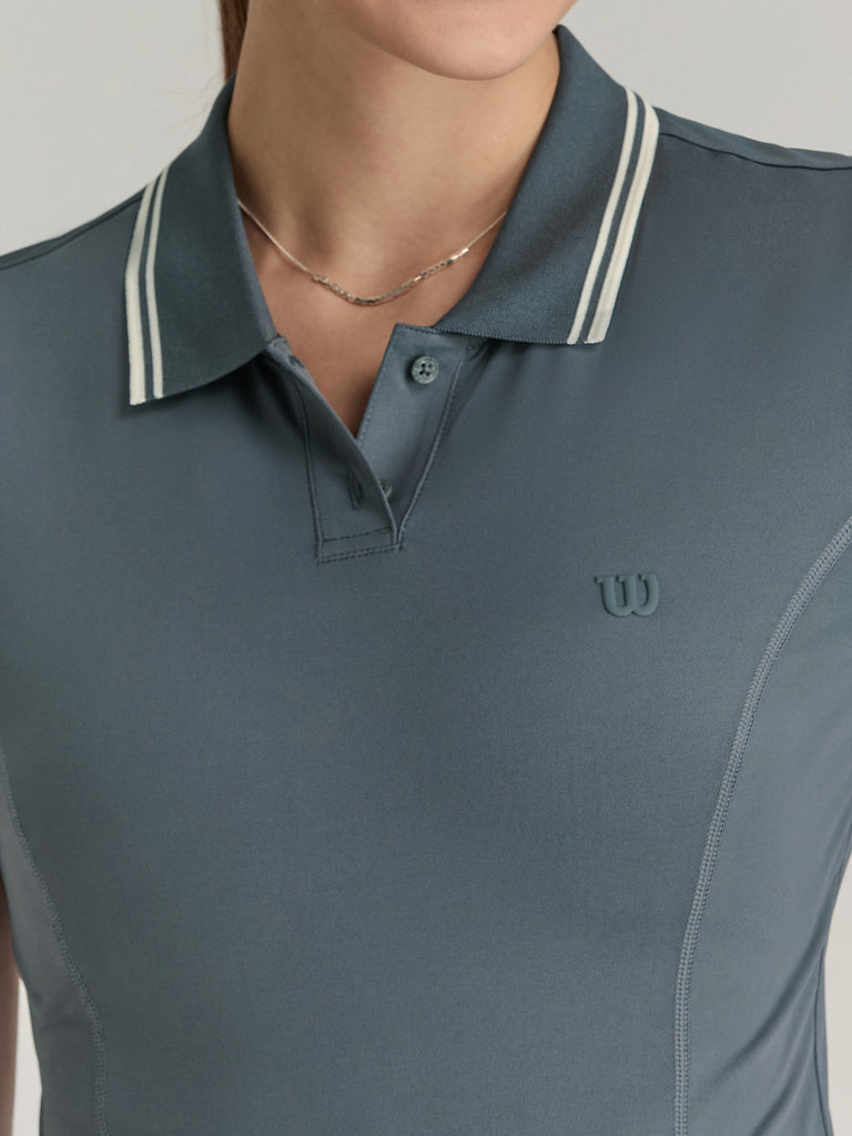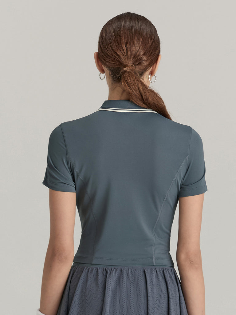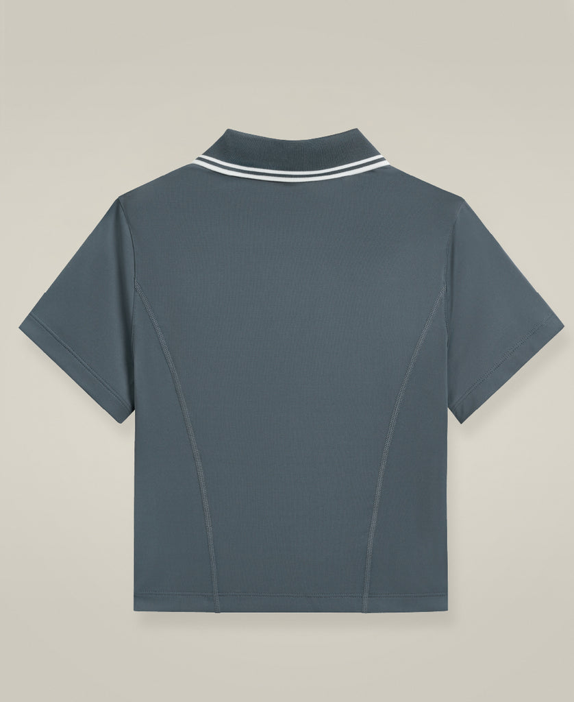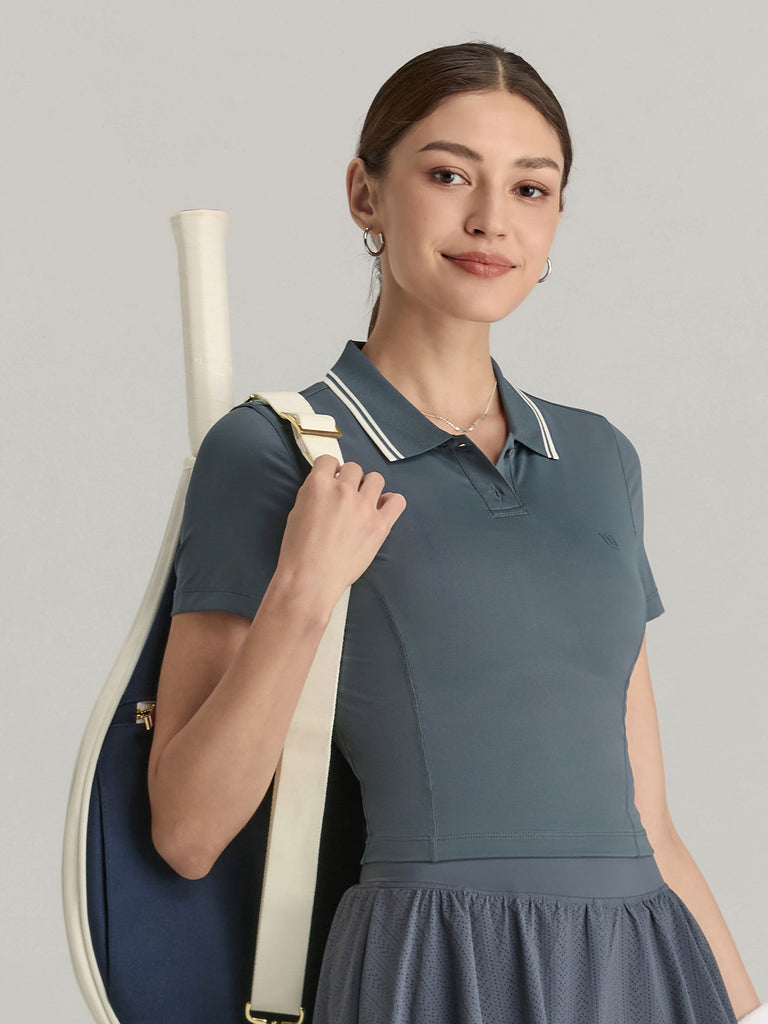 ドライな肌触りと優れた速乾性を備えたショート丈ポロ。ストレッチ素材と計算されたカッティングが動きをスムーズにサポート。スコートやワイドパンツとも好バランスで、襟裏のロゴテープとクラシックな襟元が、洗練されたスポーツエレガンスを演出。