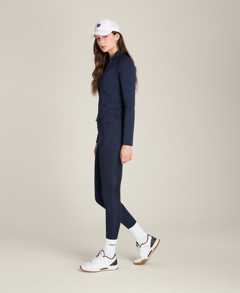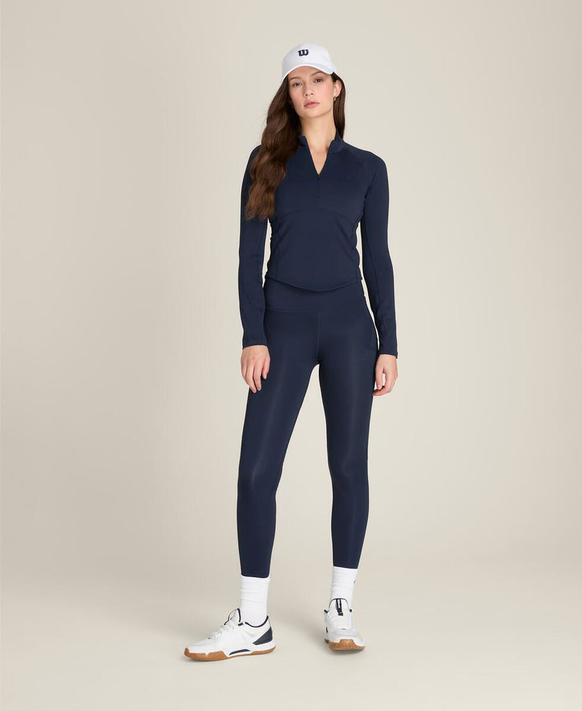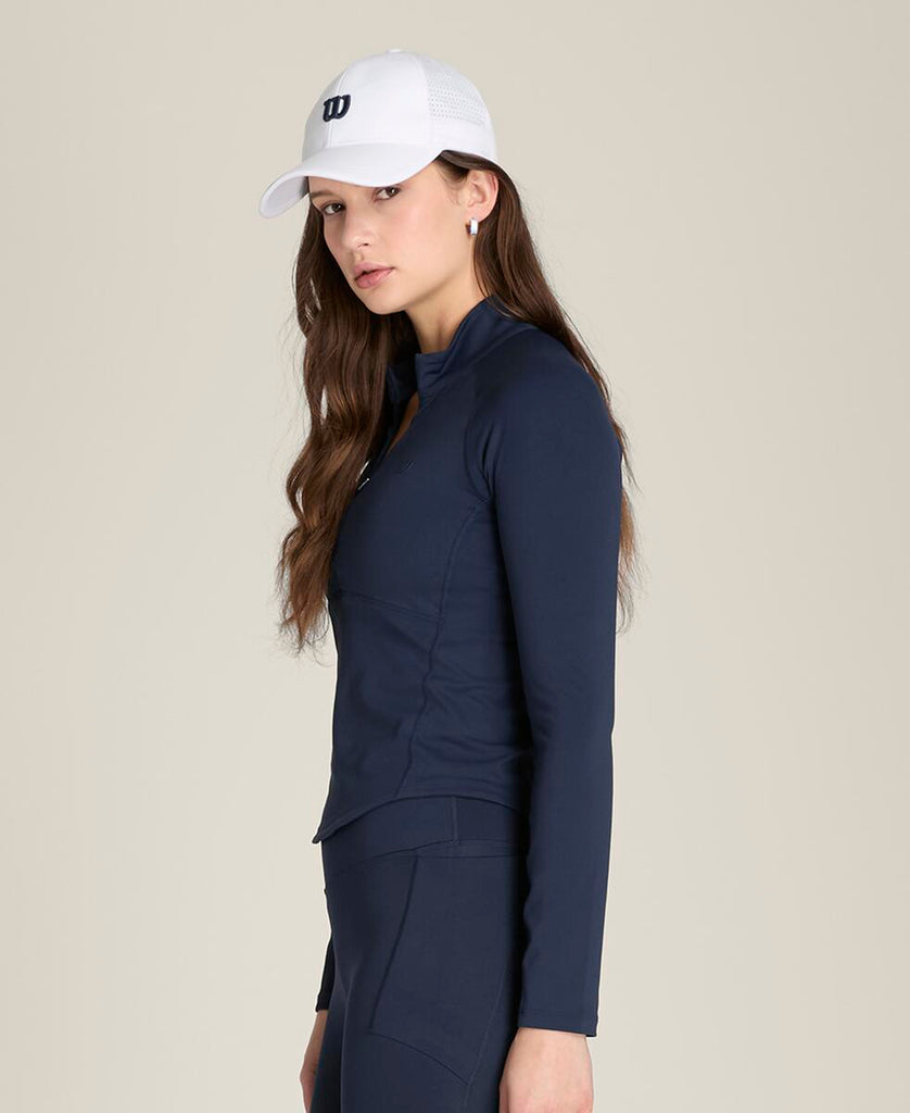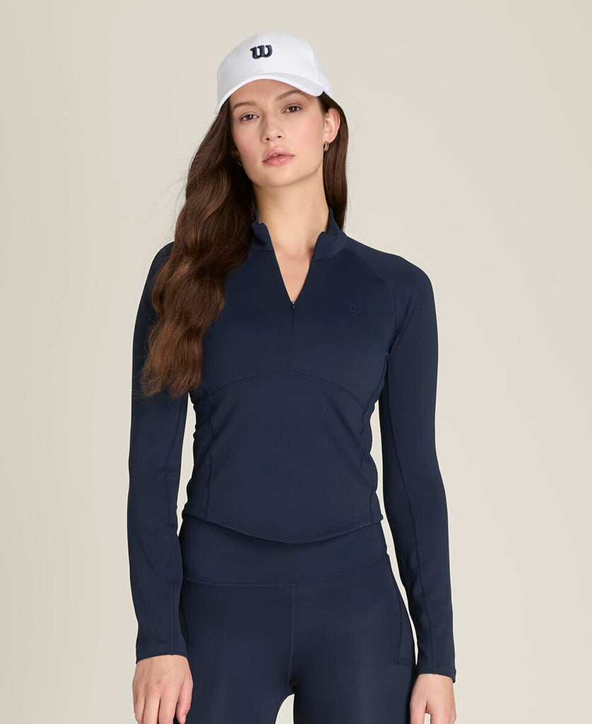 涼しい季節のプレーに最適な、機能性に優れたテクニカルトップ。厚みのあるソフトな素材が、速乾性・UVカット性を備え、単体でもレイヤードでも活躍。首元は後ろを高めに設計し、日差しから守る。脇下の立体縫製が摩擦を軽減し、快適な着用感をサポート。