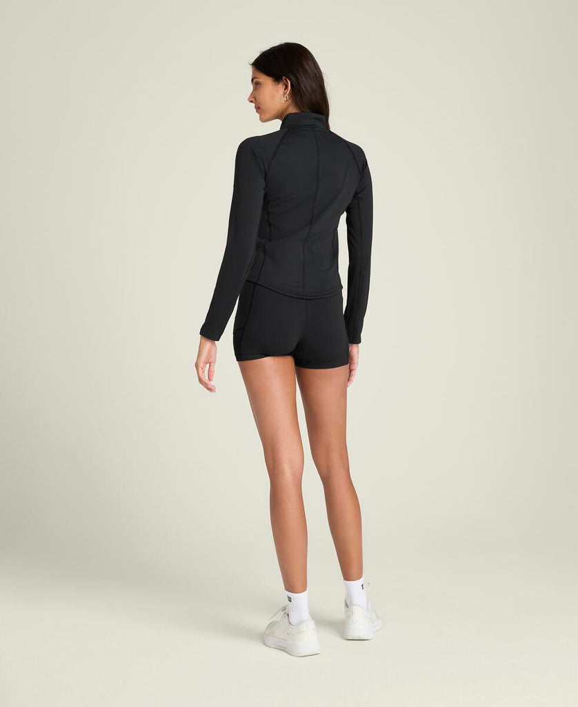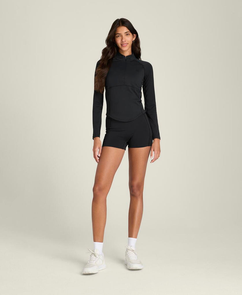 涼しい季節のプレーに最適な、機能性に優れたテクニカルトップ。厚みのあるソフトな素材が、速乾性・UVカット性を備え、単体でもレイヤードでも活躍。首元は後ろを高めに設計し、日差しから守る。脇下の立体縫製が摩擦を軽減し、快適な着用感をサポート。