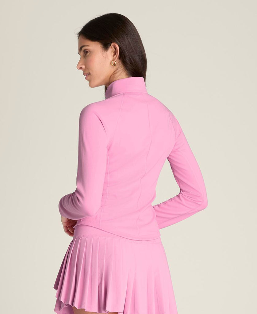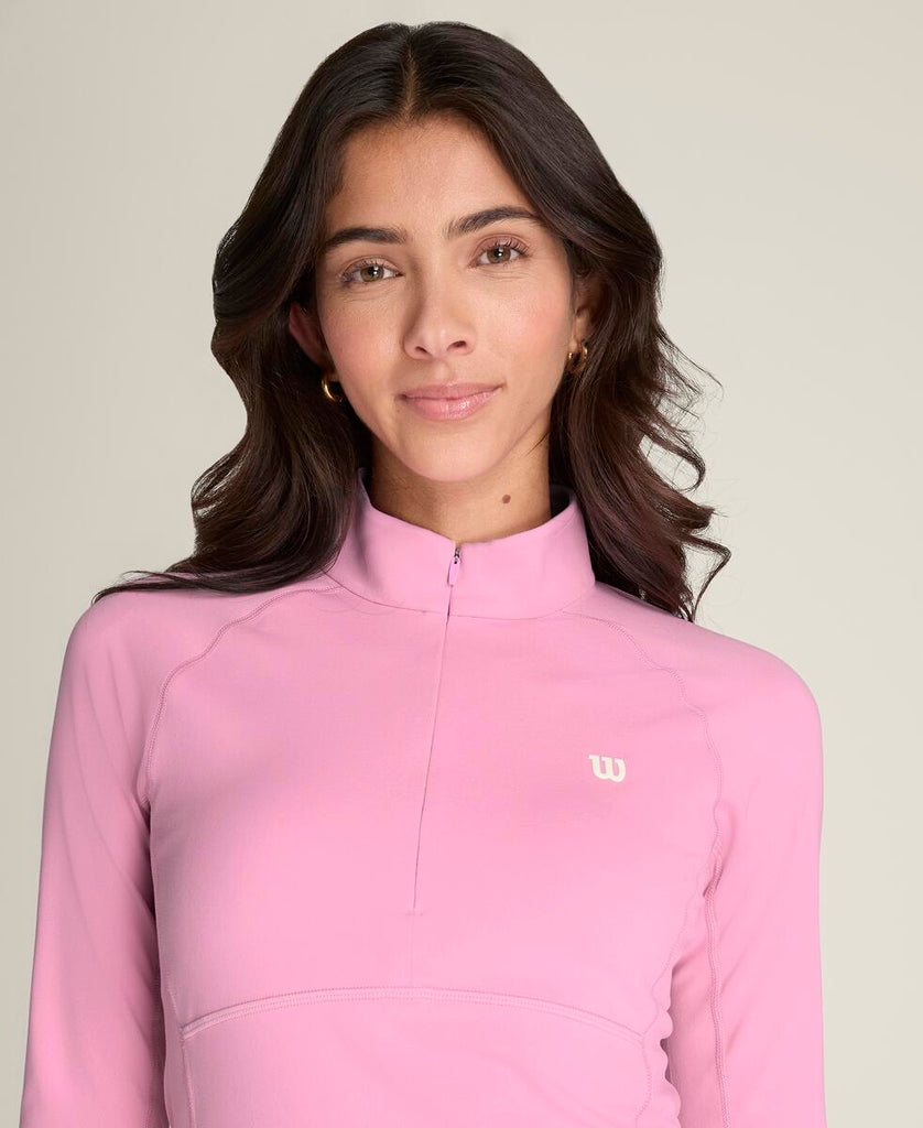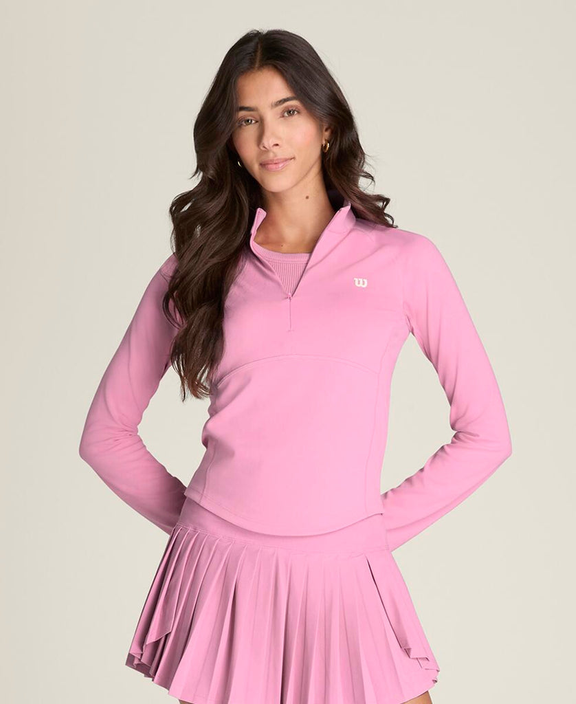 涼しい季節のプレーに最適な、機能性に優れたテクニカルトップ。厚みのあるソフトな素材が、速乾性・UVカット性を備え、単体でもレイヤードでも活躍。首元は後ろを高めに設計し、日差しから守る。脇下の立体縫製が摩擦を軽減し、快適な着用感をサポート。