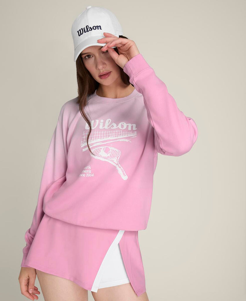 涼しを感じるときにさっと羽織れる頼れるスウェットシャツ。ラグランスリーブとゆったりしたシルエットで、時代を超えた定番スタイル。柔らかな素材は速乾性・通気性・UVカット機能を備え、タフな試合の合間も快適に過ごせる。