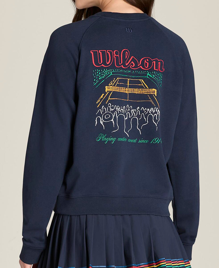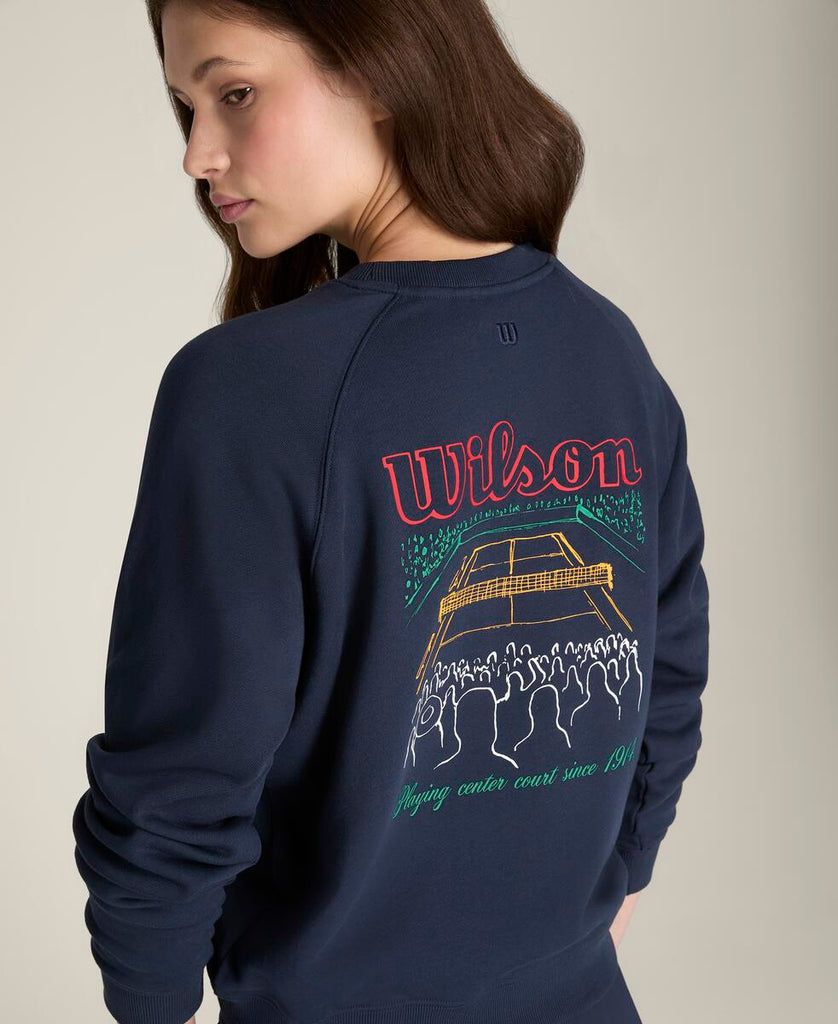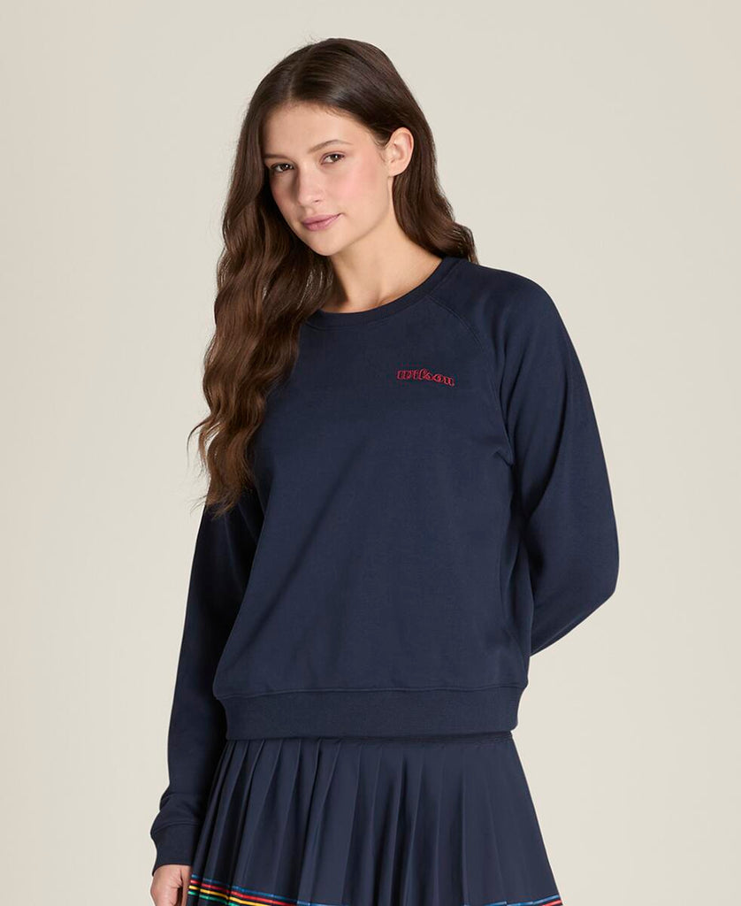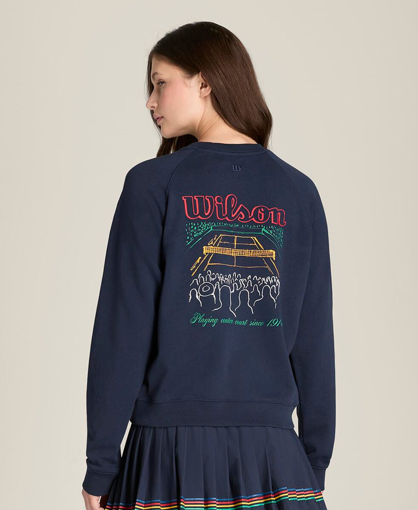 涼しを感じるときにさっと羽織れる頼れるスウェットシャツ。ラグランスリーブとゆったりしたシルエットで、時代を超えた定番スタイル。柔らかな素材は速乾性・通気性・UVカット機能を備え、タフな試合の合間も快適に過ごせる。