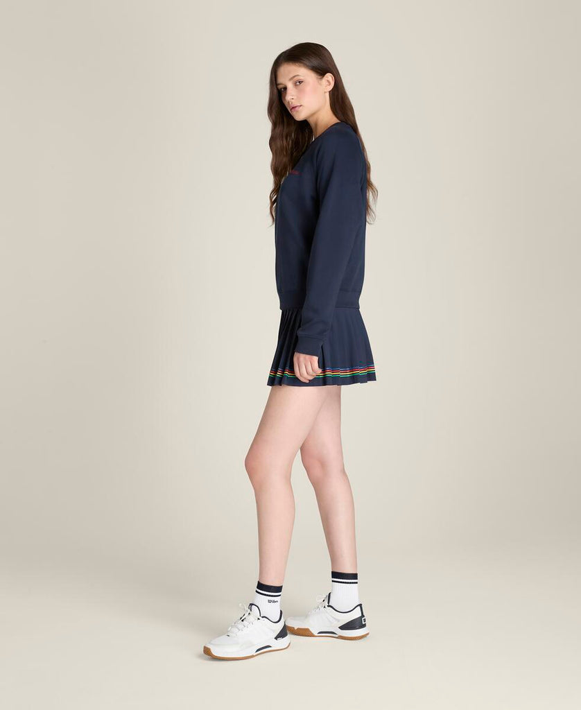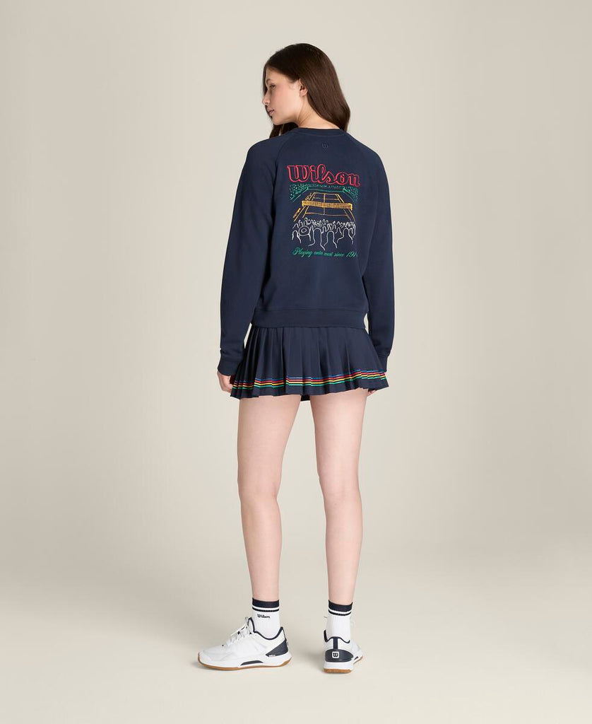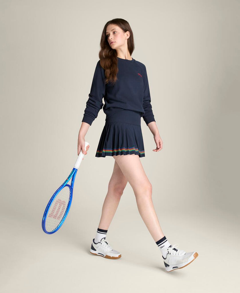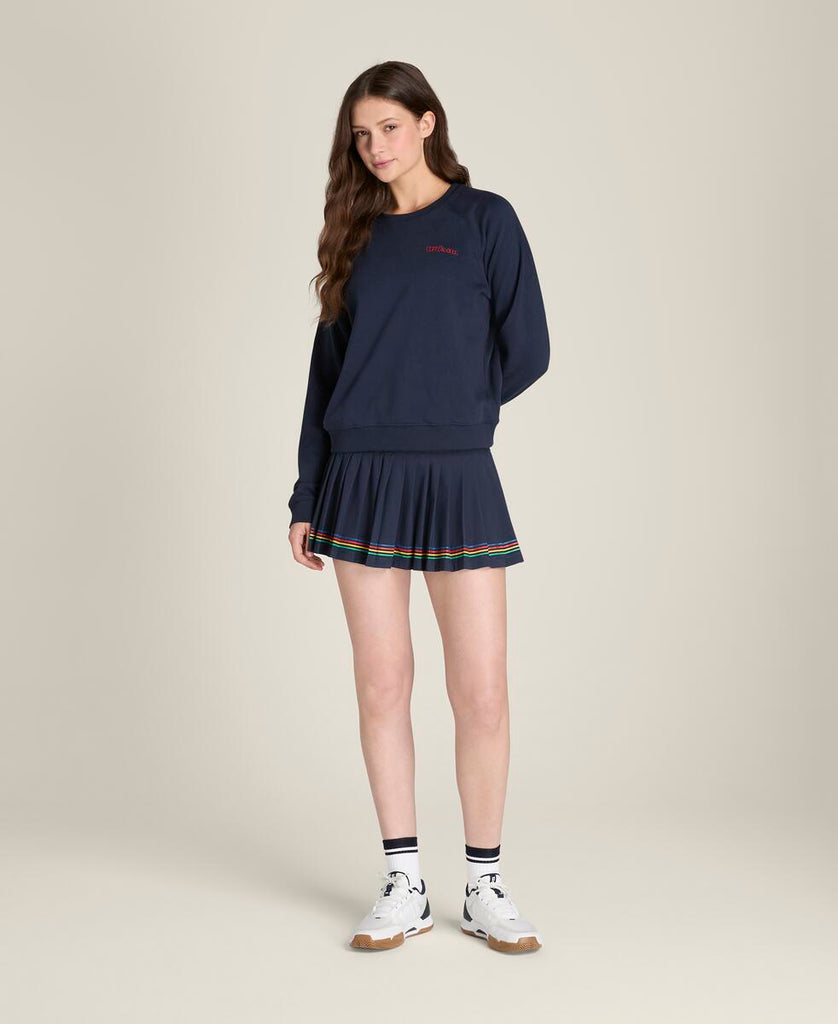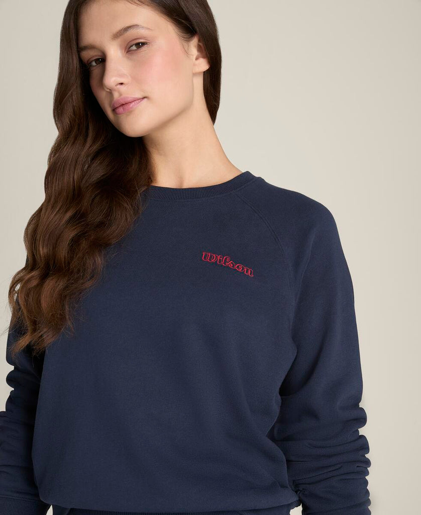 涼しを感じるときにさっと羽織れる頼れるスウェットシャツ。ラグランスリーブとゆったりしたシルエットで、時代を超えた定番スタイル。柔らかな素材は速乾性・通気性・UVカット機能を備え、タフな試合の合間も快適に過ごせる。