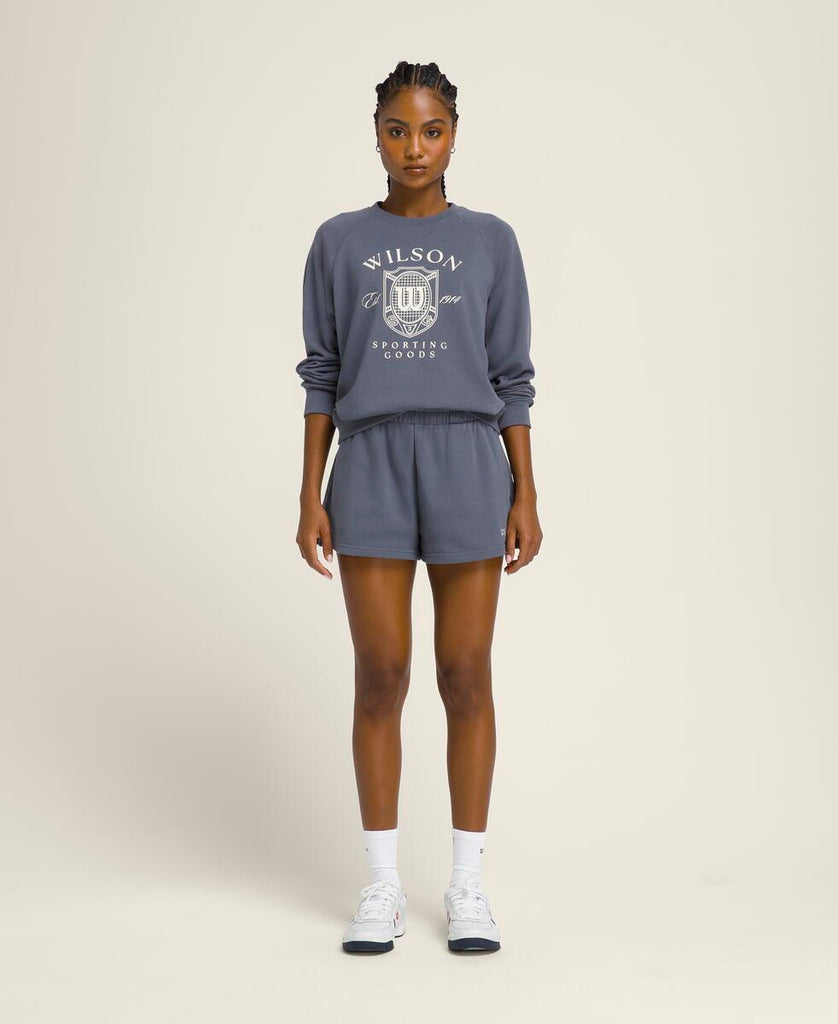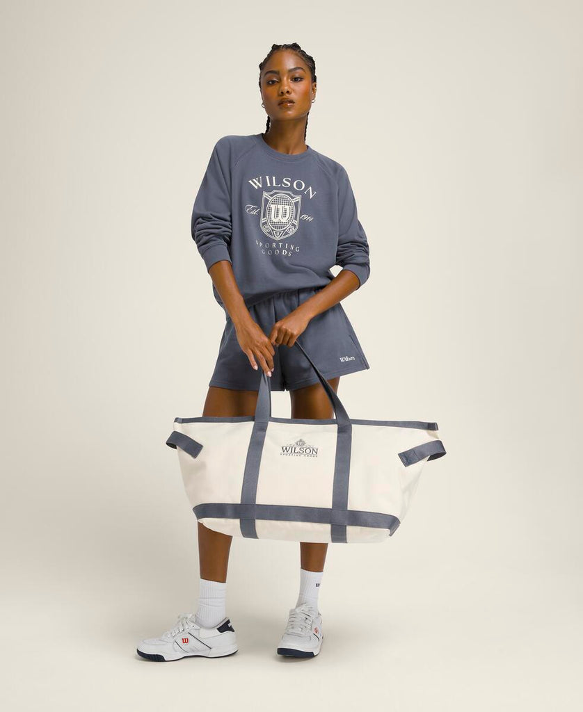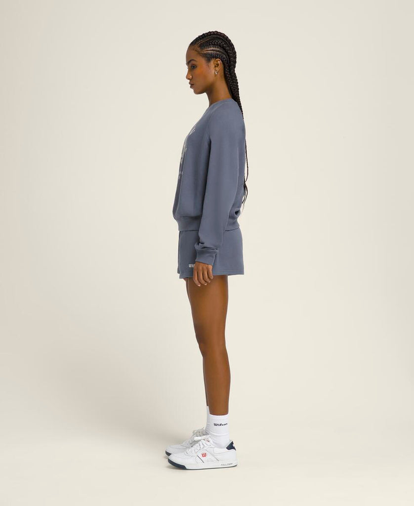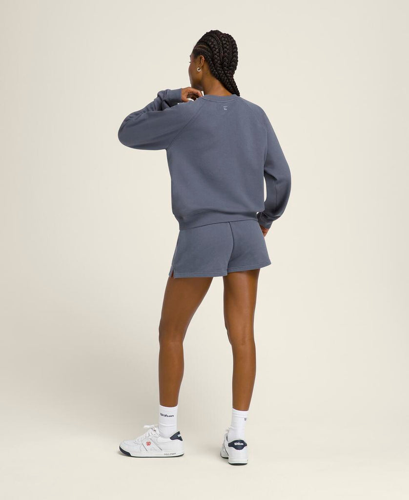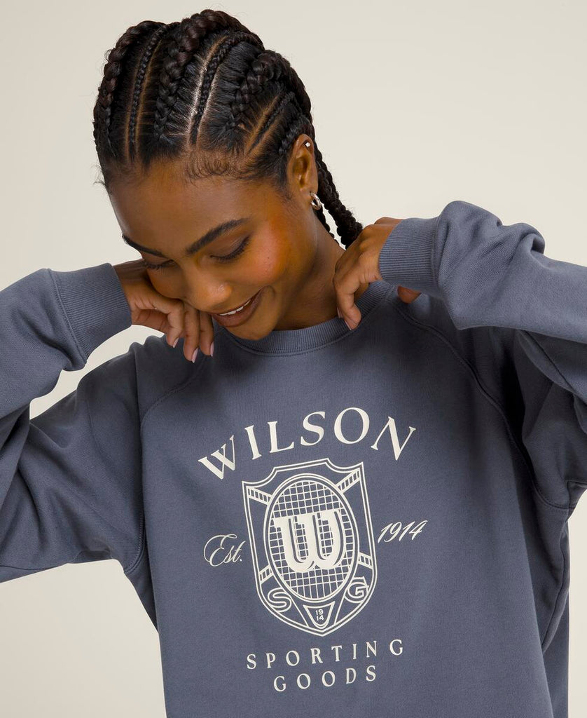 涼しを感じるときにさっと羽織れる頼れるスウェットシャツ。ラグランスリーブとゆったりしたシルエットで、時代を超えた定番スタイル。柔らかな素材は速乾性・通気性・UVカット機能を備え、タフな試合の合間も快適に過ごせる。