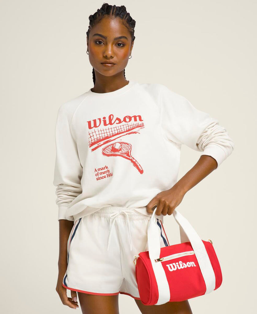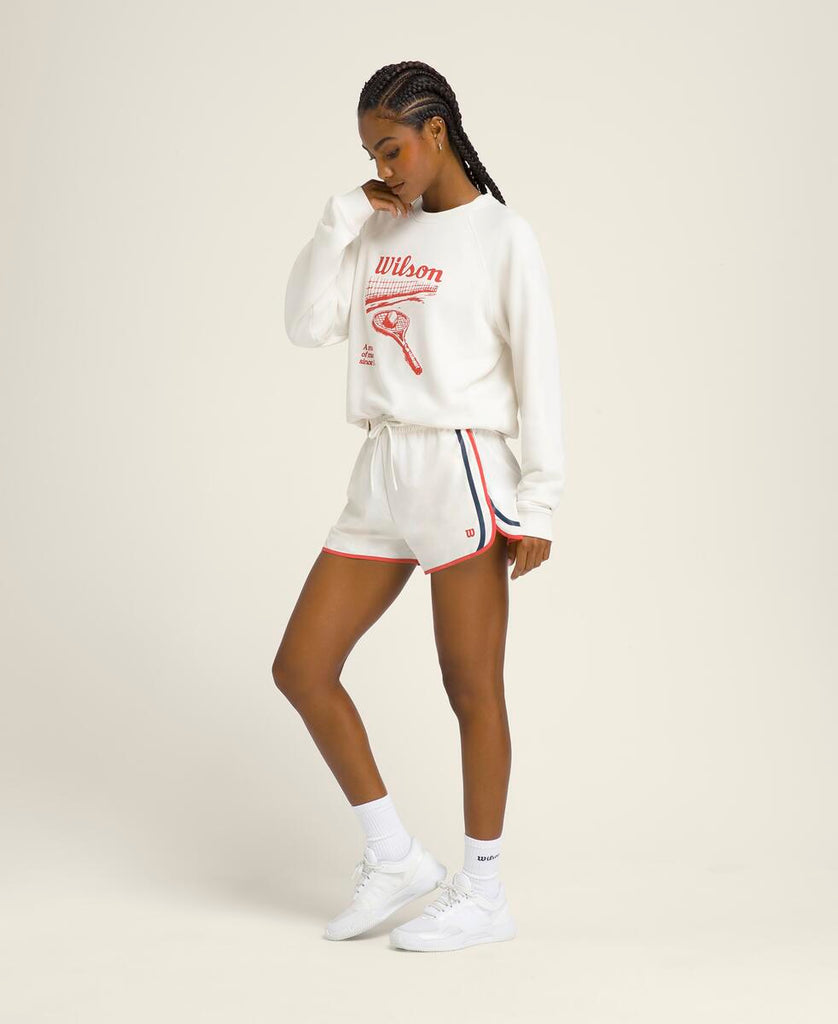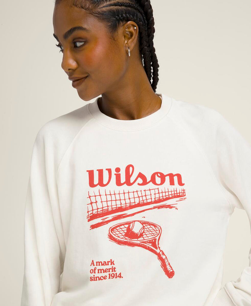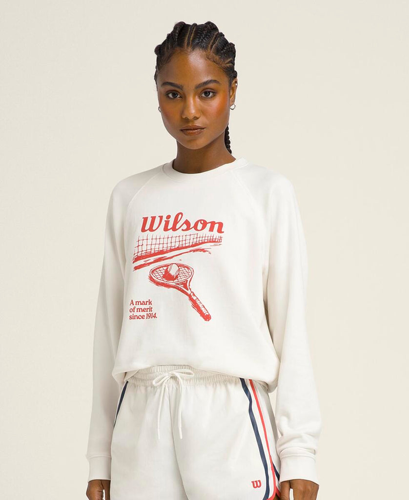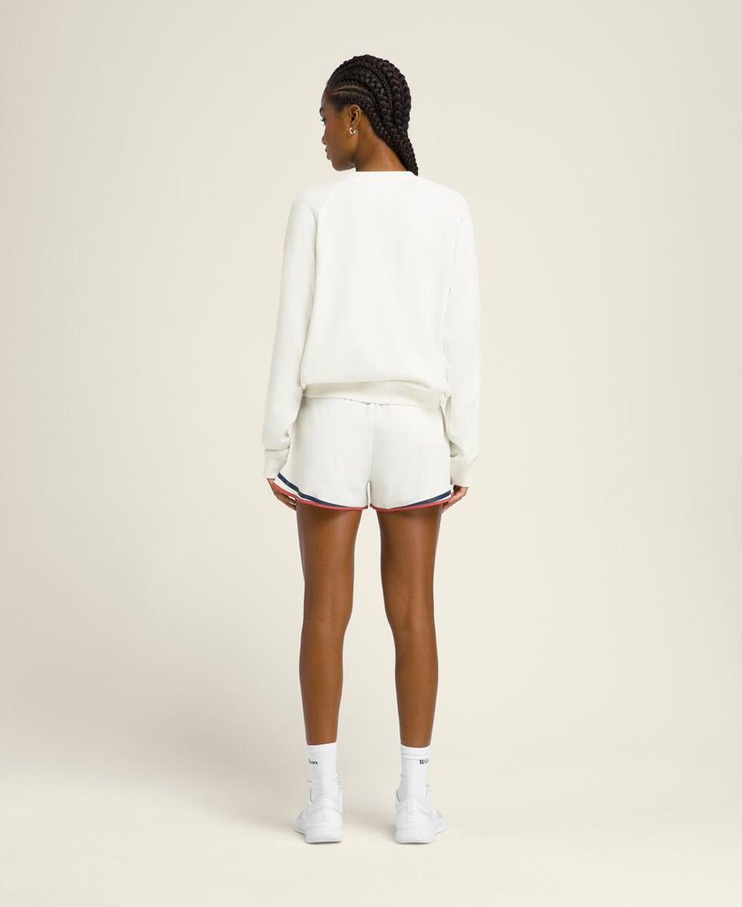 涼しさを感じるときにさっと羽織れる頼れるスウェットシャツ。ラグランスリーブとゆったりしたシルエットで、時代を超えた定番スタイル。柔らかな素材は速乾性・通気性・UVカット機能を備え、タフな試合の合間も快適に過ごせる。