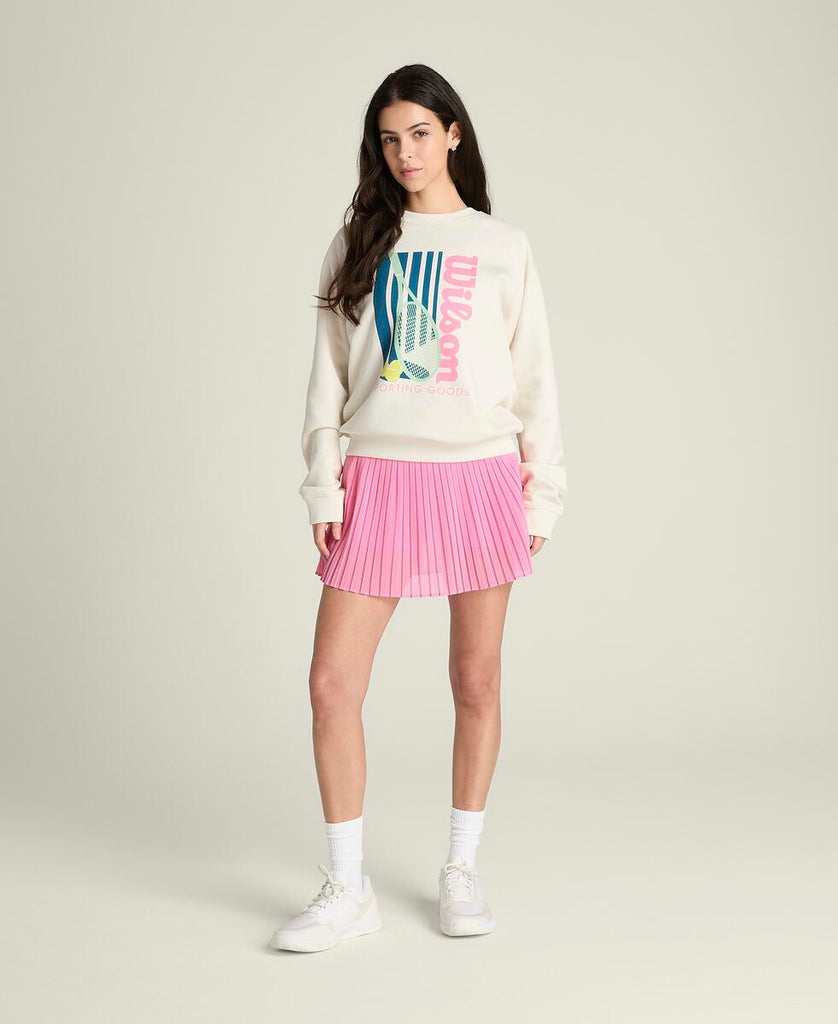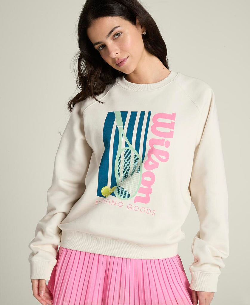 涼しを感じるときにさっと羽織れる頼れるスウェットシャツ。ラグランスリーブとゆったりしたシルエットで、時代を超えた定番スタイル。柔らかな素材は速乾性・通気性・UVカット機能を備え、タフな試合の合間も快適に過ごせる。