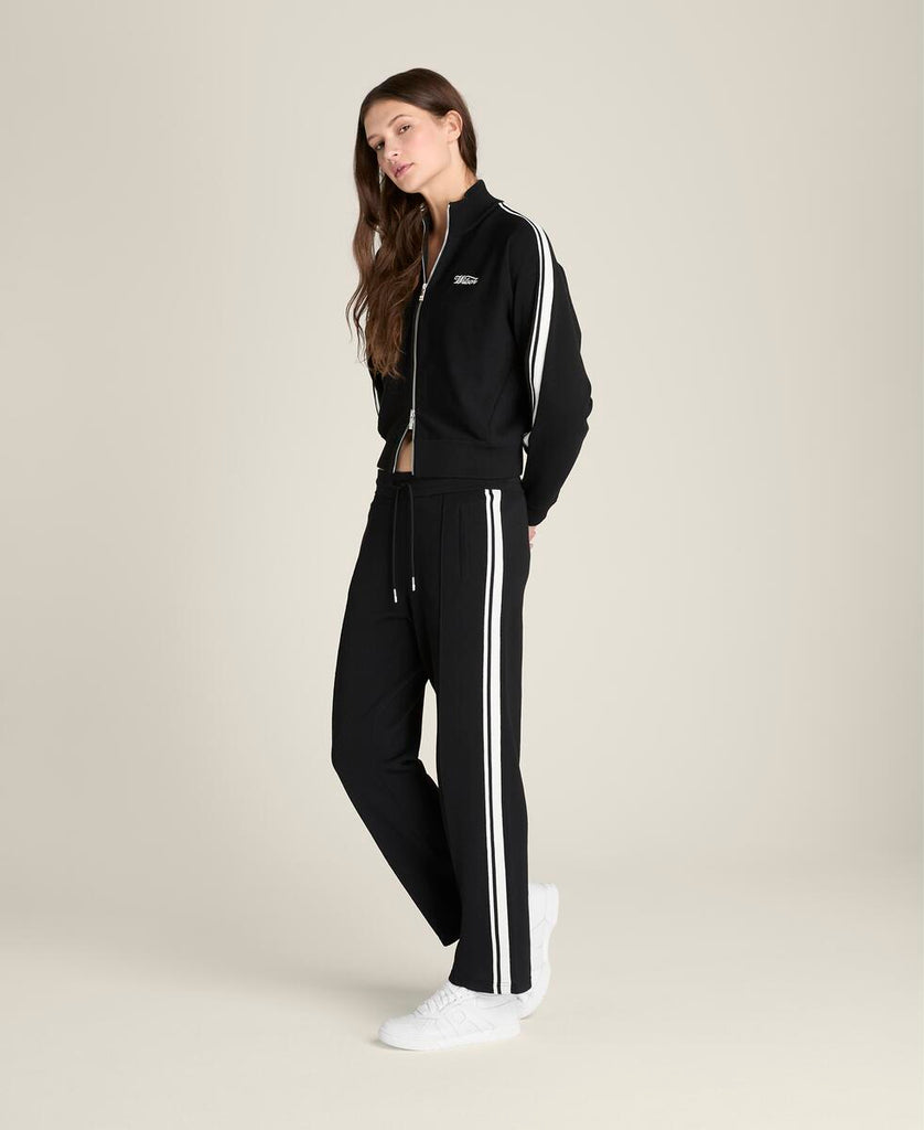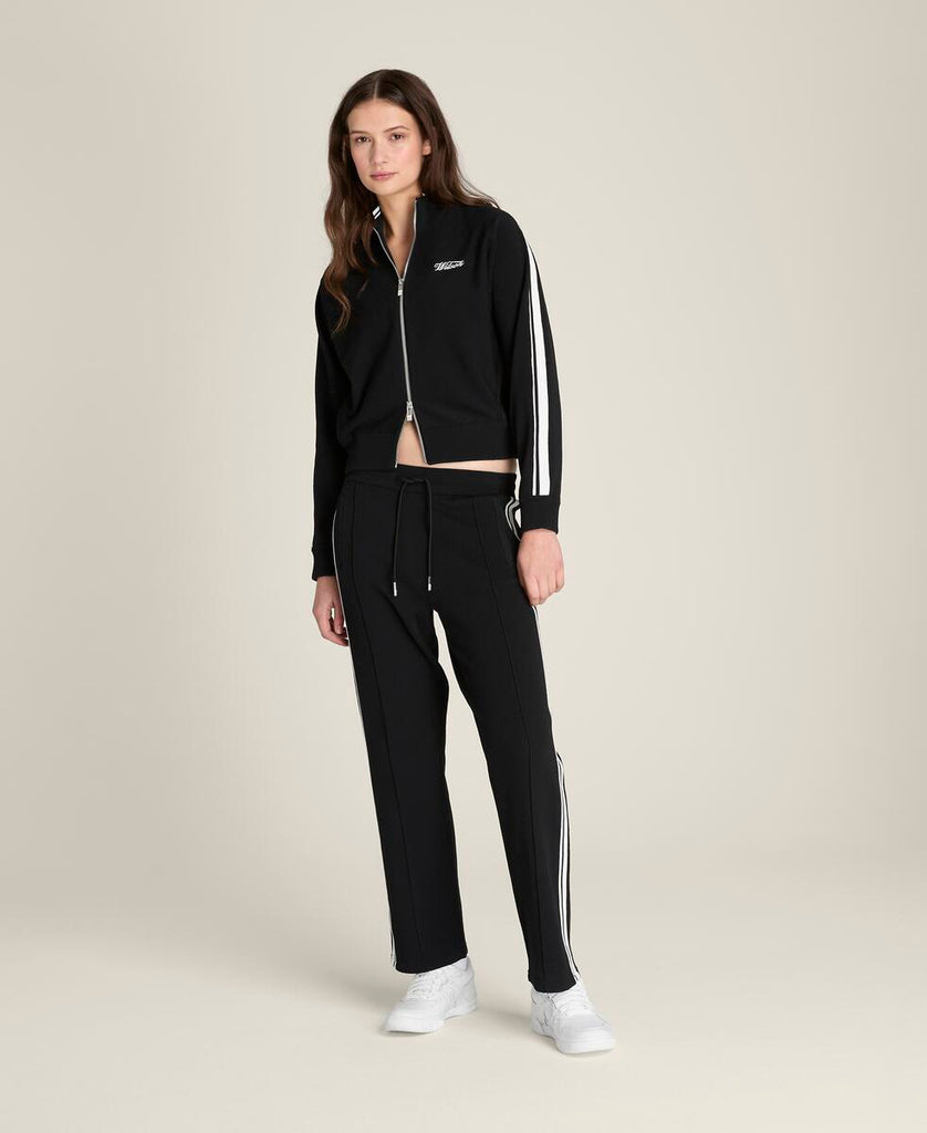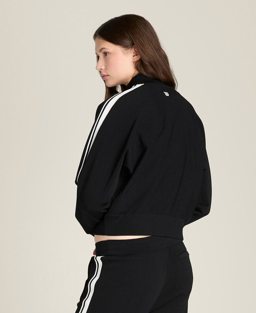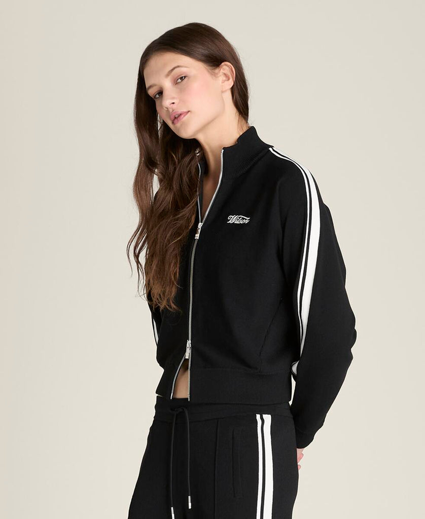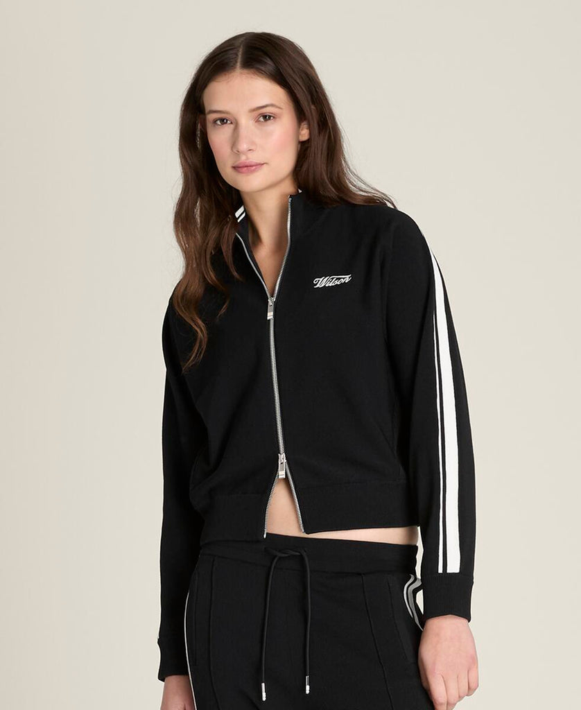 柔らかく通気性の高いニット素材を使用し、快適さを追求した一枚。袖のストライプが、ヴィンテージスポーツウェアを思わせるクラシックなアクセントに。