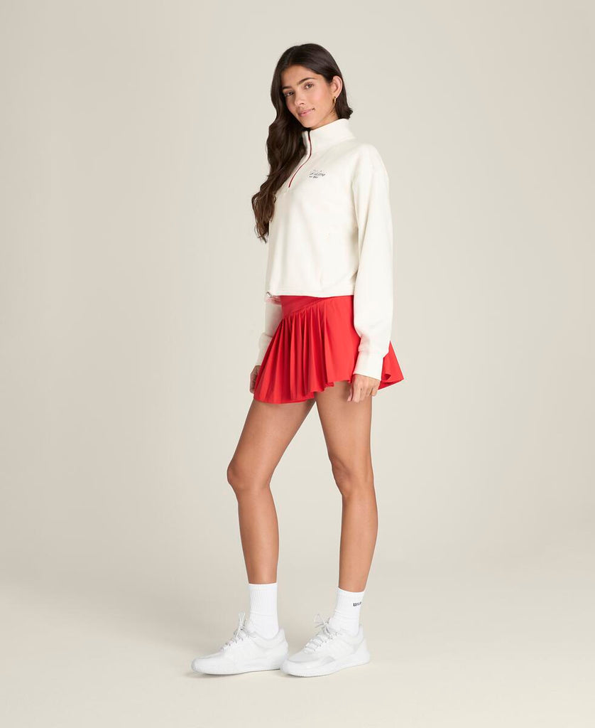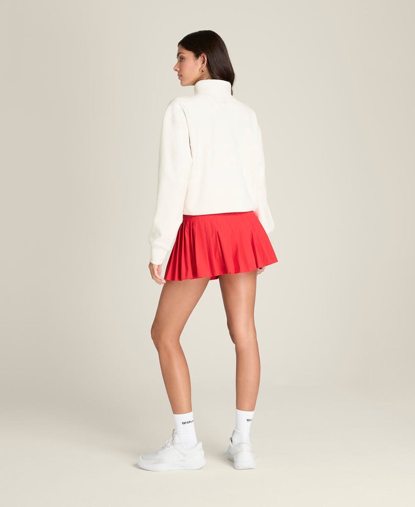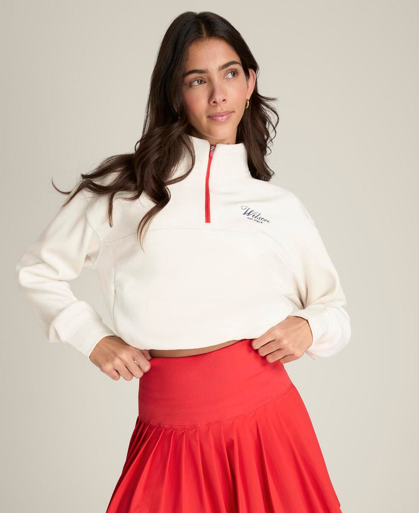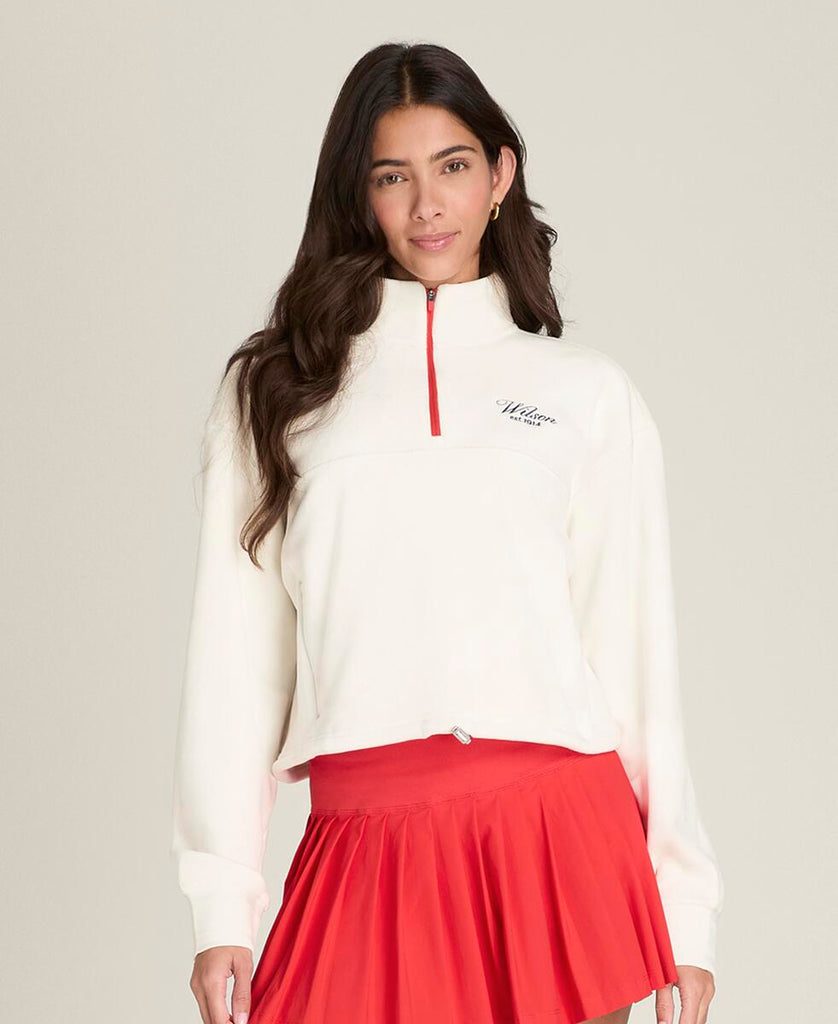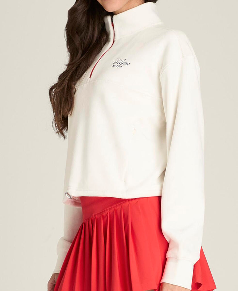 ベルベットのように柔らかく上質な肌ざわり。やや短めの丈に好みのシルエットに調整できるウエストコード付き。さりげないポケット収納と着脱しやすいハーフジップデザインが特徴。