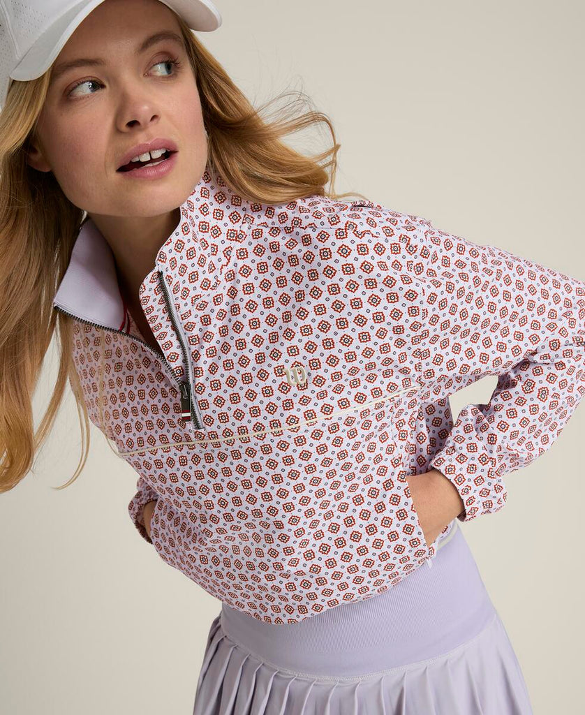 ややクロップド丈のフィットは、裾に調節可能なウエストコードを備え、好みに合わせて調節が可能。さりげないポケット収納と、簡単な着脱を可能にするハーフジップで、肌寒く感じる日にピッタリなハーフジップジャケット。