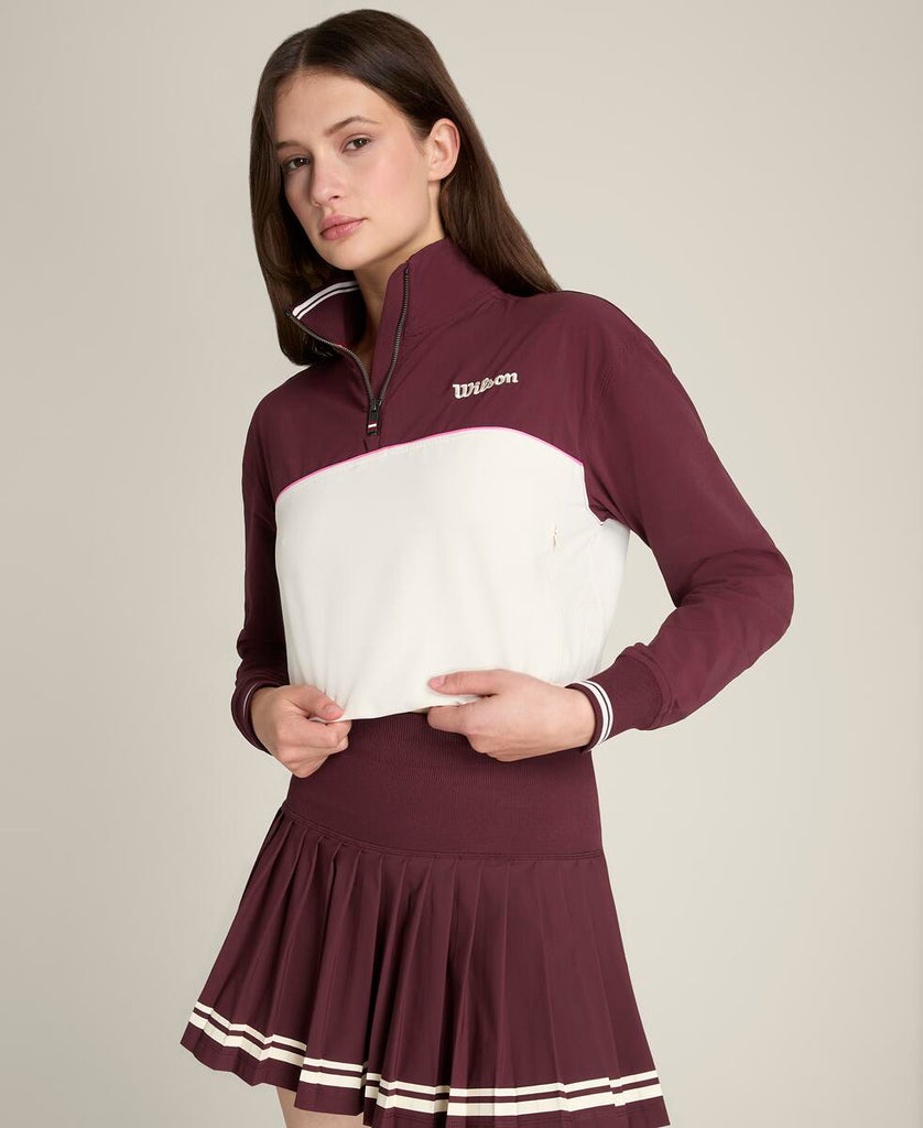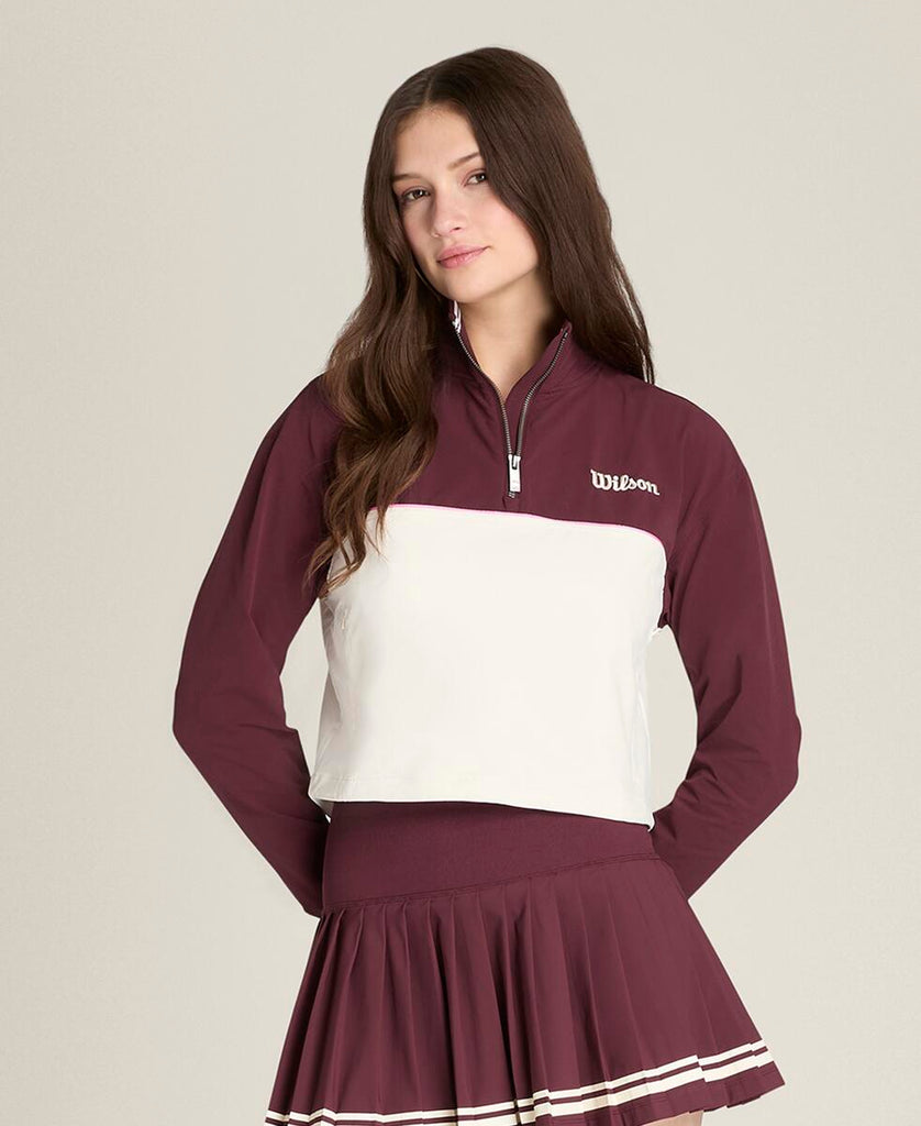 ややクロップド丈のフィットは、裾に調節可能なウエストコードを備え、好みに合わせて調節が可能。さりげないポケット収納と、簡単な着脱を可能にするハーフジップで、肌寒く感じる日にピッタリなハーフジップジャケット。