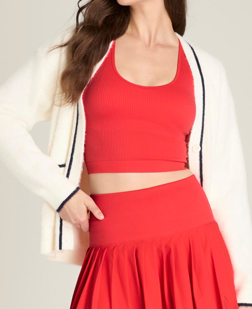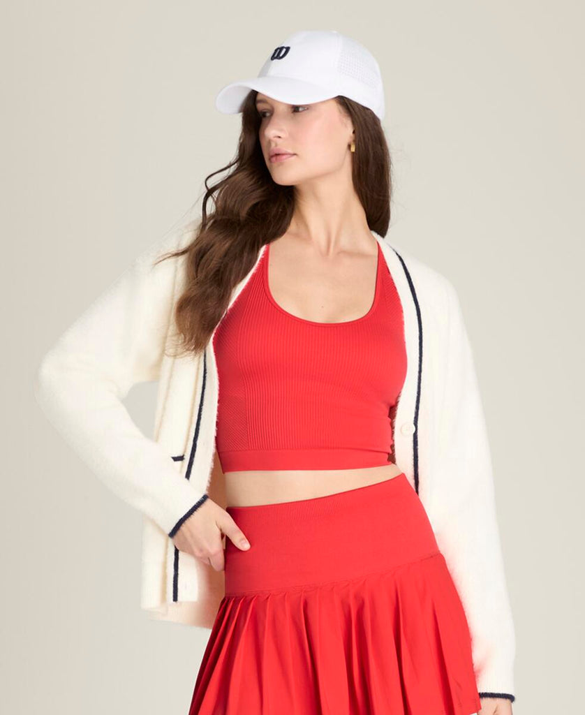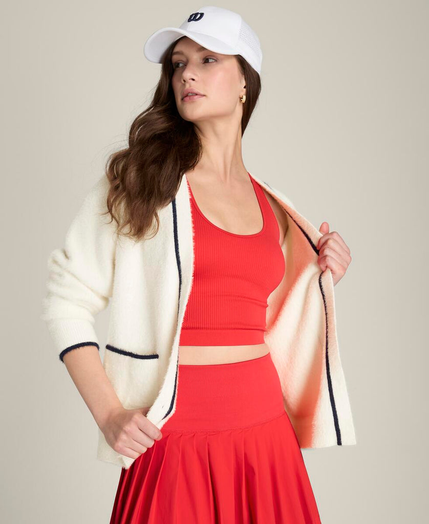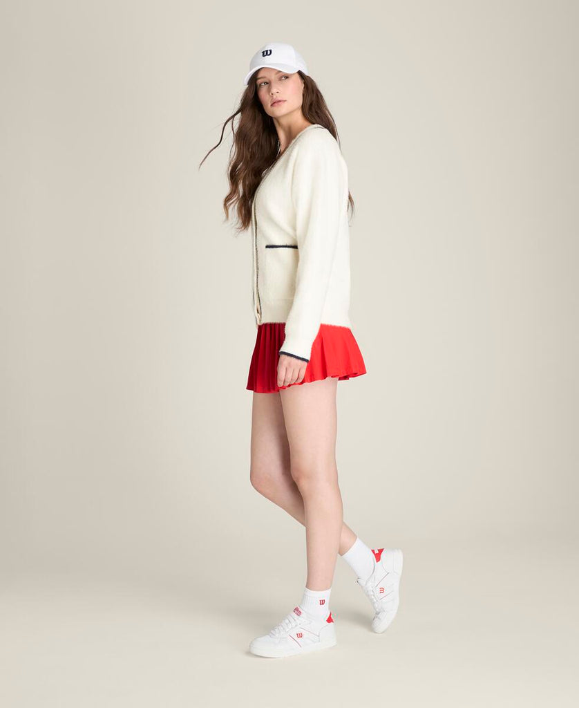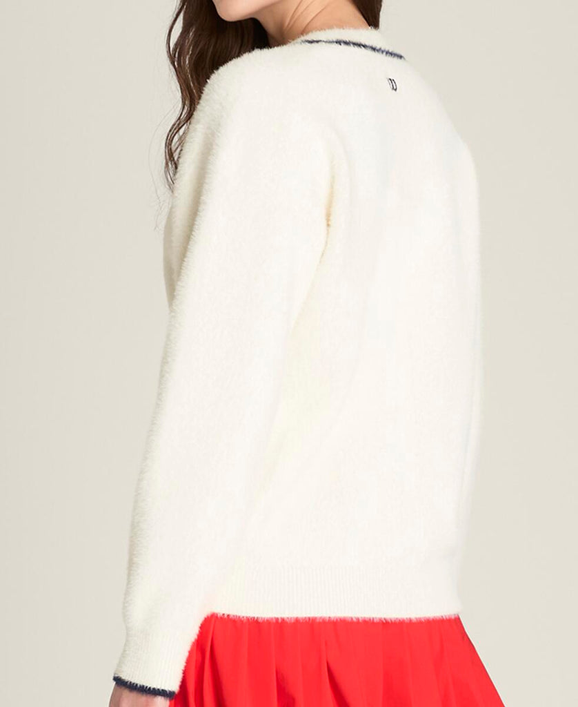 テニスウェアにもデイリーウェアにも重ねやすい、ゆったりとしたリラックスフィット。ふんわりとした軽やかなニット素材は通気性にも優れ、プレー後のクールダウン時にも快適な着心地。