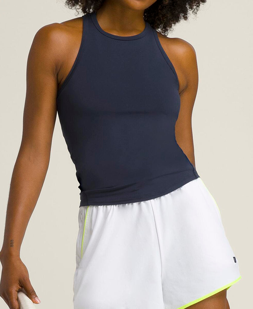 バランスの取れた詰まり具合のネックラインが、日差し対策とスタイルアップを叶える軽量タンクトップ。動きにフィットする滑らかな生地が快適さをキープし、伸びにくい設計でアクティブな動きにも対応。レーサーバックデザインが動きやすさと洗練された印象をプラス。