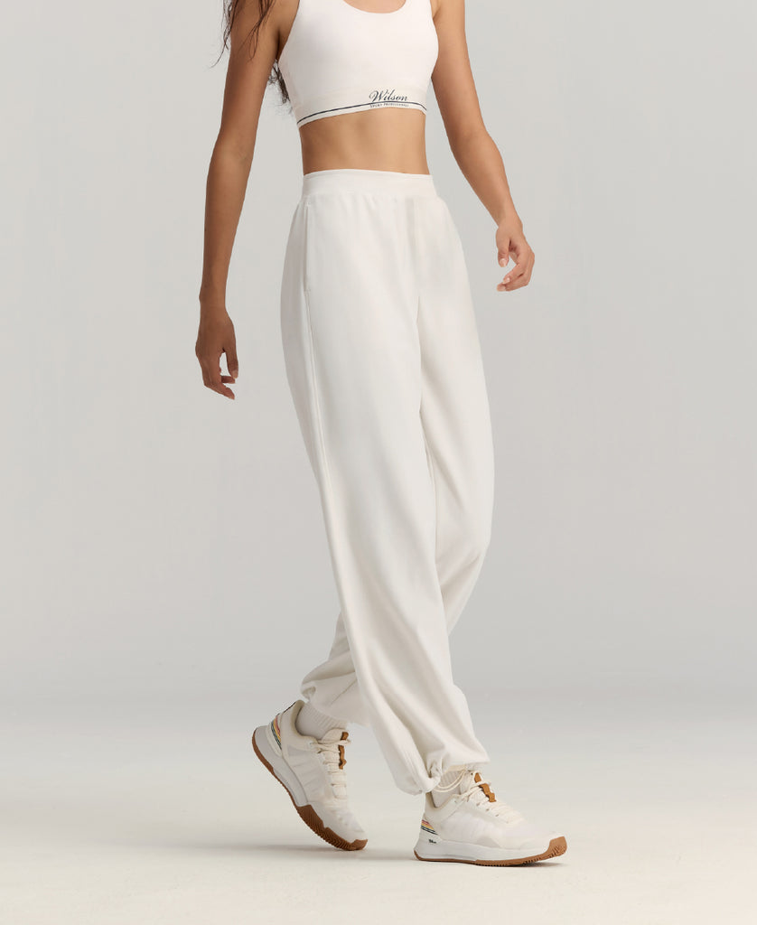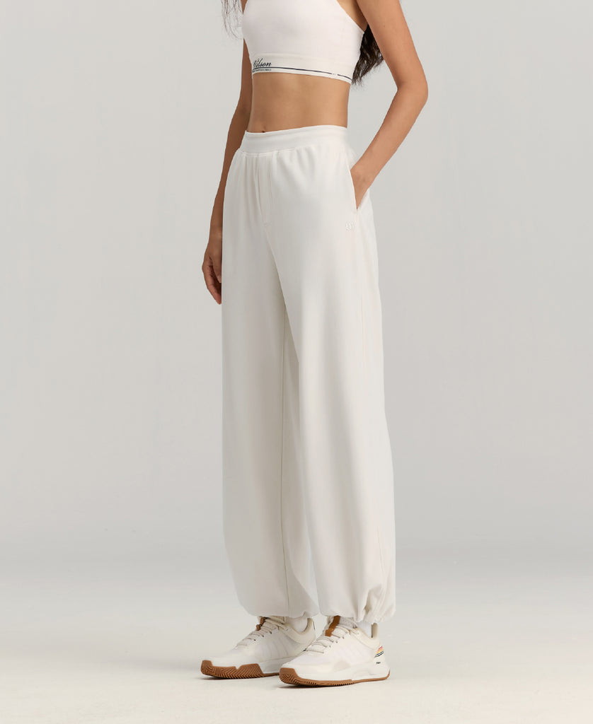 軽やかでストレッチの効いたナイロン素材を採用した、動きやすく快適なロングパンツ。裾のドローコードでシルエットを自在にアレンジすることが可能。