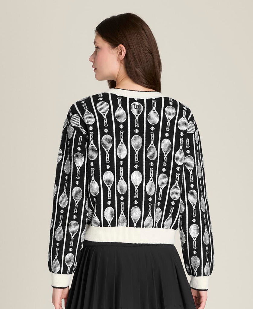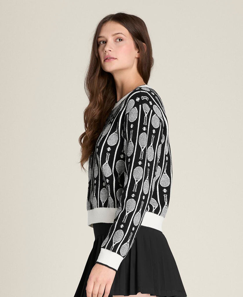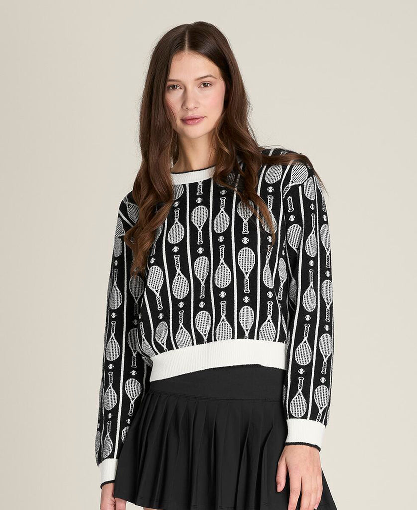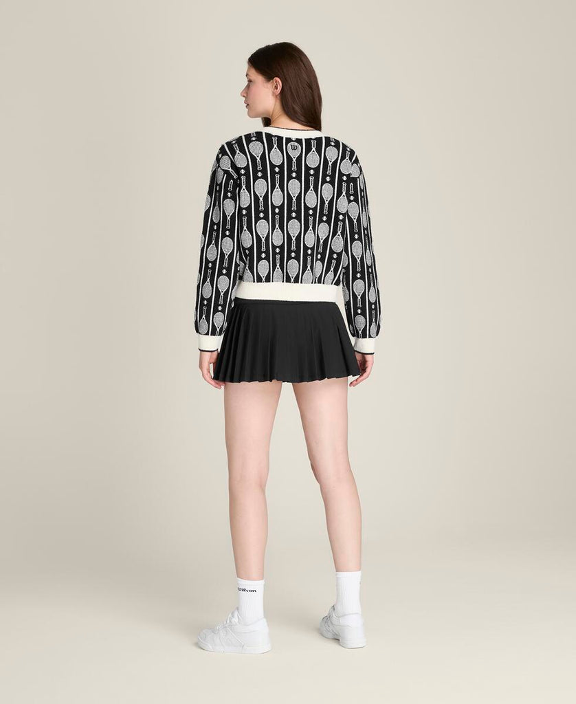 カジュアルな快適さを引き出すクルーネックニット。高めの裾丈とゆるやかなシルエットが、テニススカートやデニムと好相性。ワイドリブが全体をすっきりまとめ、練習前後にも気軽に羽織れる。