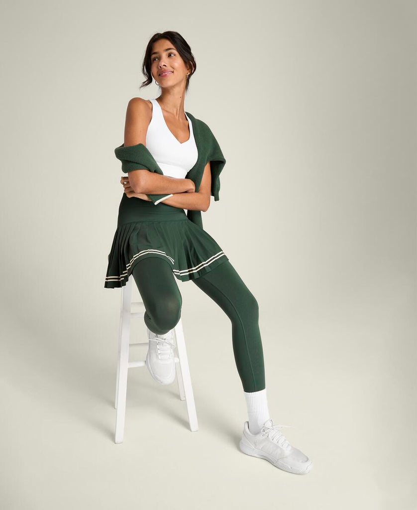 スタイリッシュさと快適さを兼ね備え、ベストセラー「ミッドタウンスコート」からインスパイアされたスカートとタイツが組み合わさったアイテム。軽量生地とサポート力のあるウエストバンド、スマートフォンなどが収納可能なポケットを備えており、足首上までの7/8丈は長時間の着用にも理想的。肌寒い日のコートでのプレーも快適にサポートする。