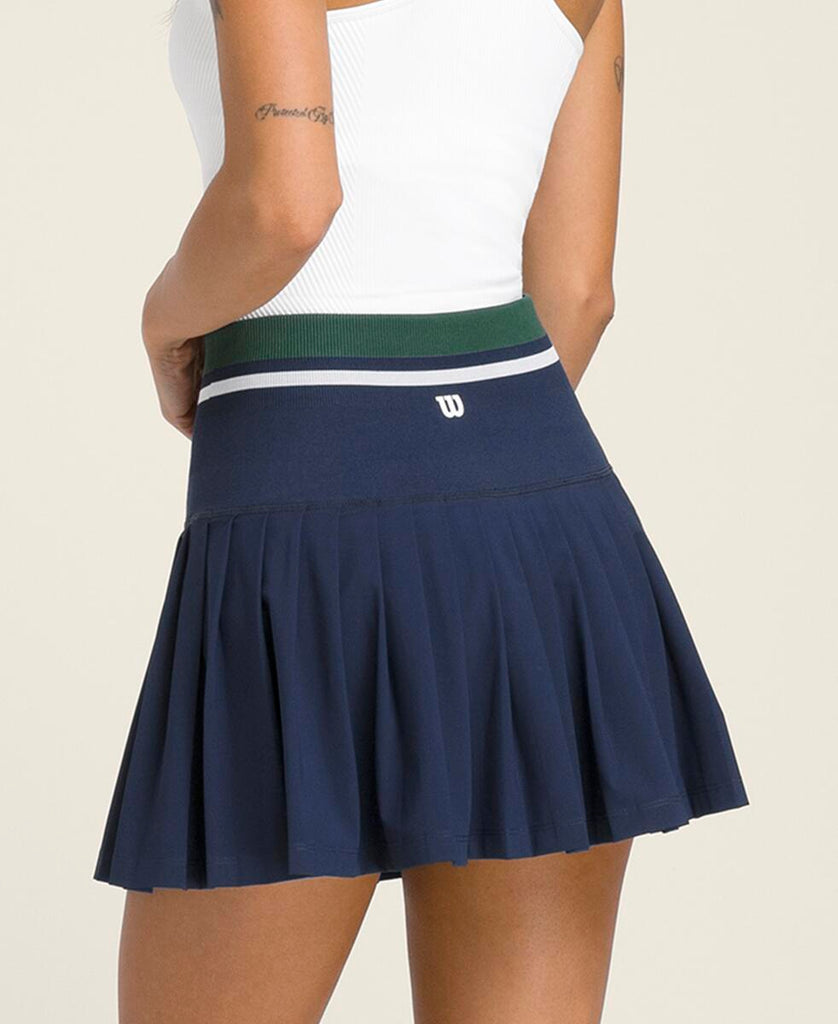 伝統的なテニススカートをアレンジしたこのスコートはシームレスな内側のショーツにプリーツの入ったスカートを重ねている。UVカットが施され、テニスをするときだけでなく、それ以外の場面でも着用可能なデザイン。 太もも上部までの長さのインナーショーツには収納ポケットがあり、独自の段階式コンプレッションウエストバンドが完璧なフィット感を提供。