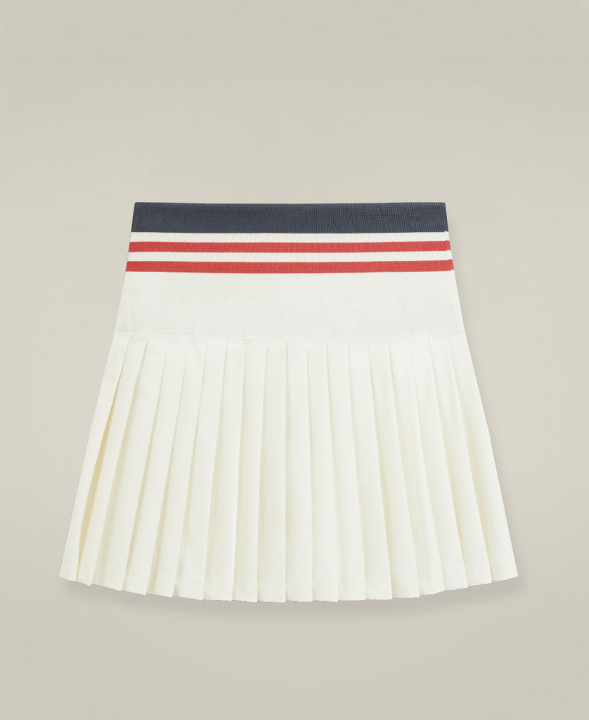 伝統的なテニススカートをアレンジしたこのスコートはシームレスな内側のショーツにプリーツの入ったスカートを重ねている。UVカットが施され、テニスをするときだけでなく、それ以外の場面でも着用可能なデザイン。 太もも上部までの長さのインナーショーツには収納ポケットがあり、独自の段階式コンプレッションウエストバンドが完璧なフィット感を提供。