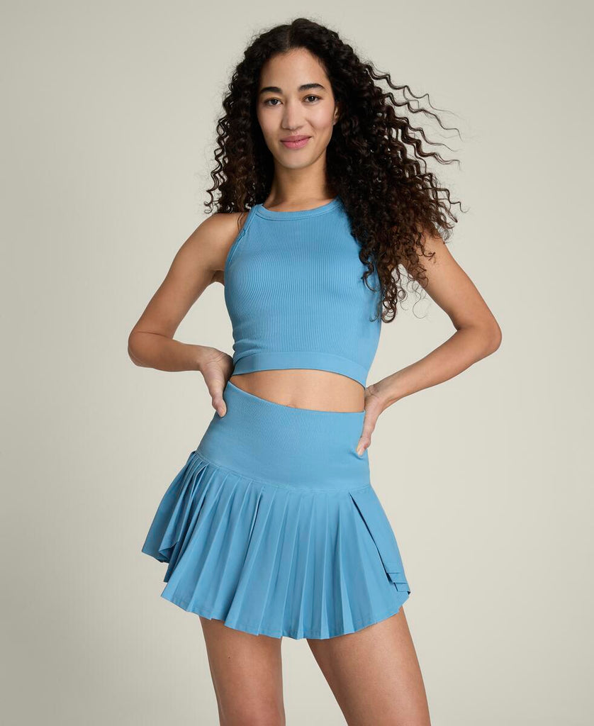ベストセラーの「ミッドタウン テニス スコート」が動きに合わせて快適にフィットするラップデザインに進化。伝統的なテニススカートをアレンジしたこのスコートはシームレスな内側のショーツにプリーツの入ったスカートを重ねている。UVカットが施され、テニスをするときだけでなく、それ以外の場面でも着用可能なデザイン。