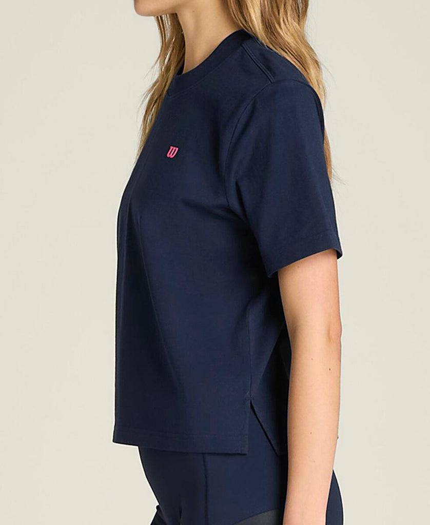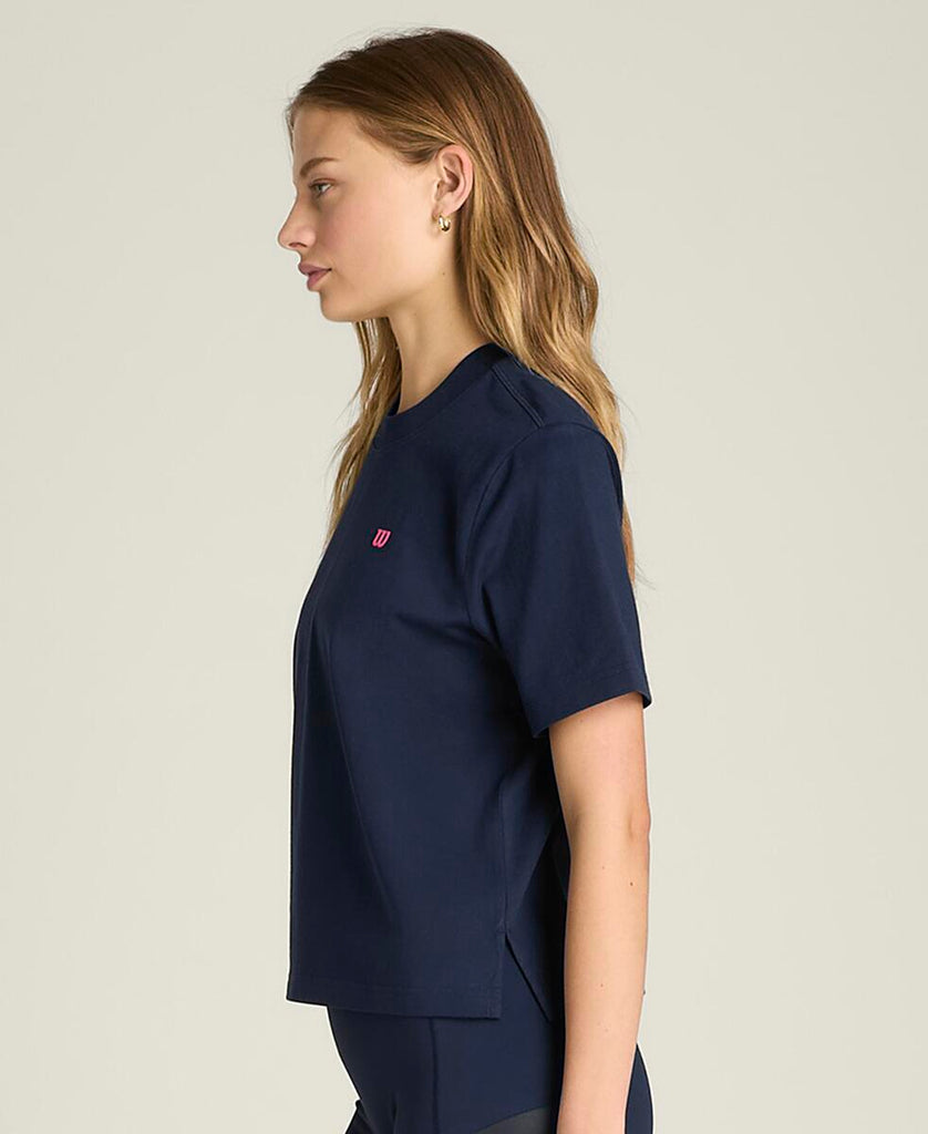 ・素早く乾き、快適さが持続するクイックドライ機能・お気に入りの1枚のような、柔らかいコットンの肌触り・コートサイドからオフの日まで活躍するデザイン・繰り返し着用しても型崩れしにくいタフなリブ襟・ルーズフィット、ドロップショルダー、スタイルをすっきり見せるクロップド丈