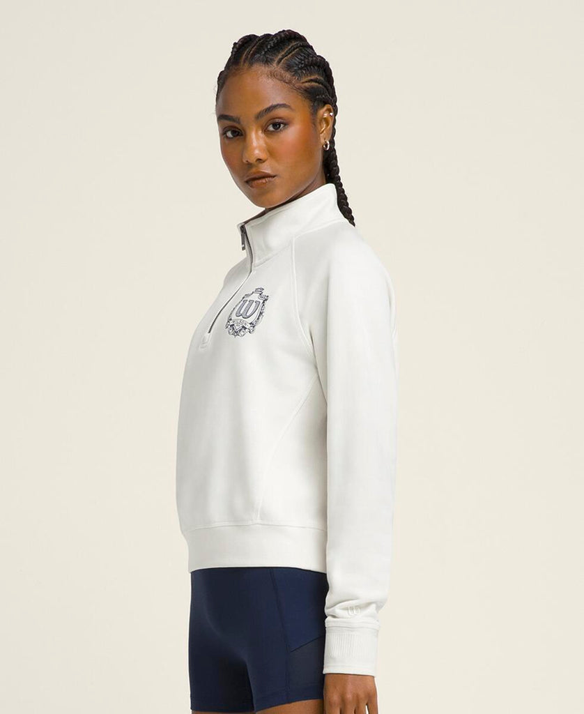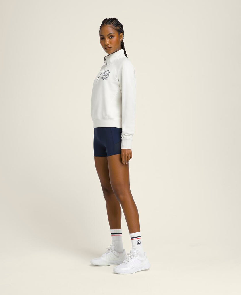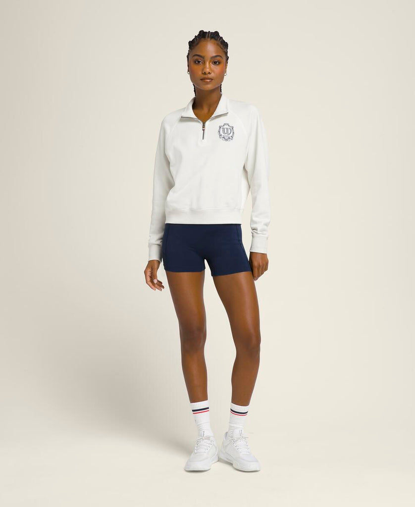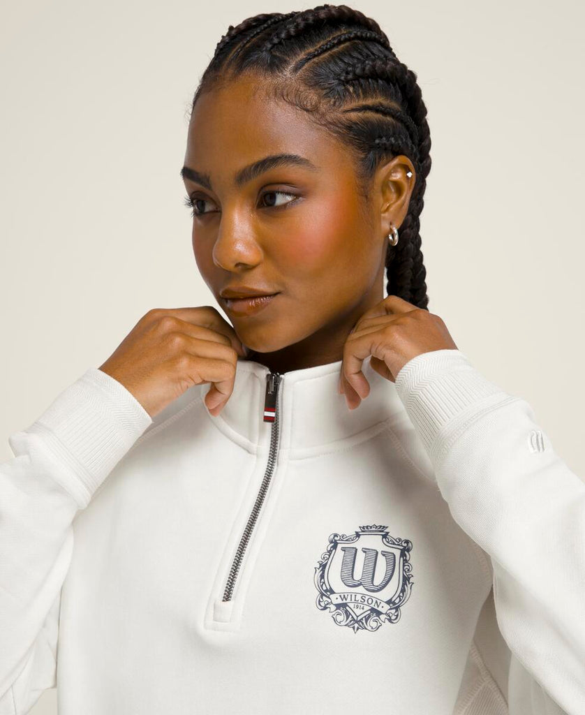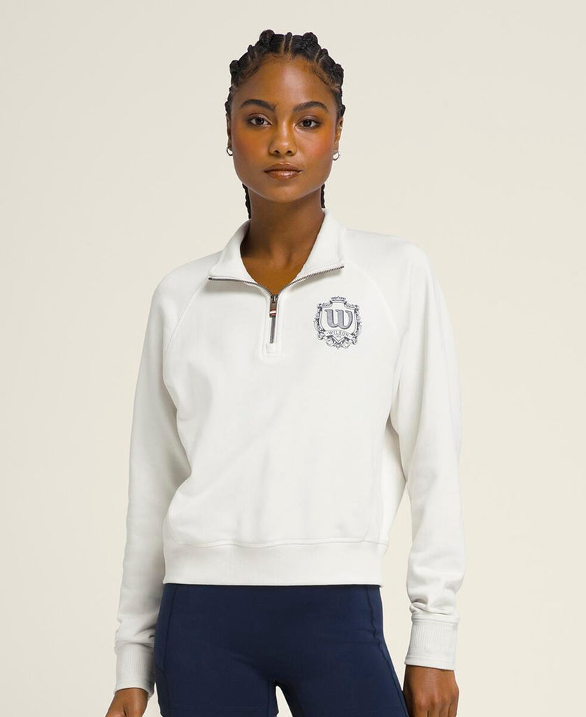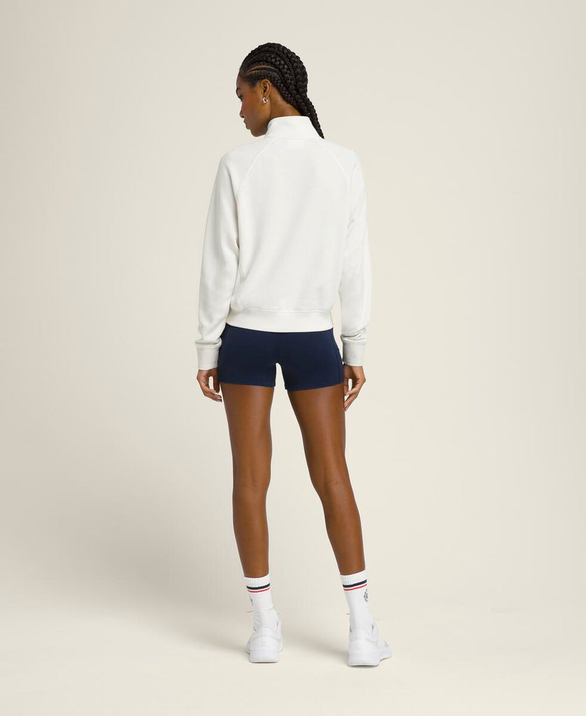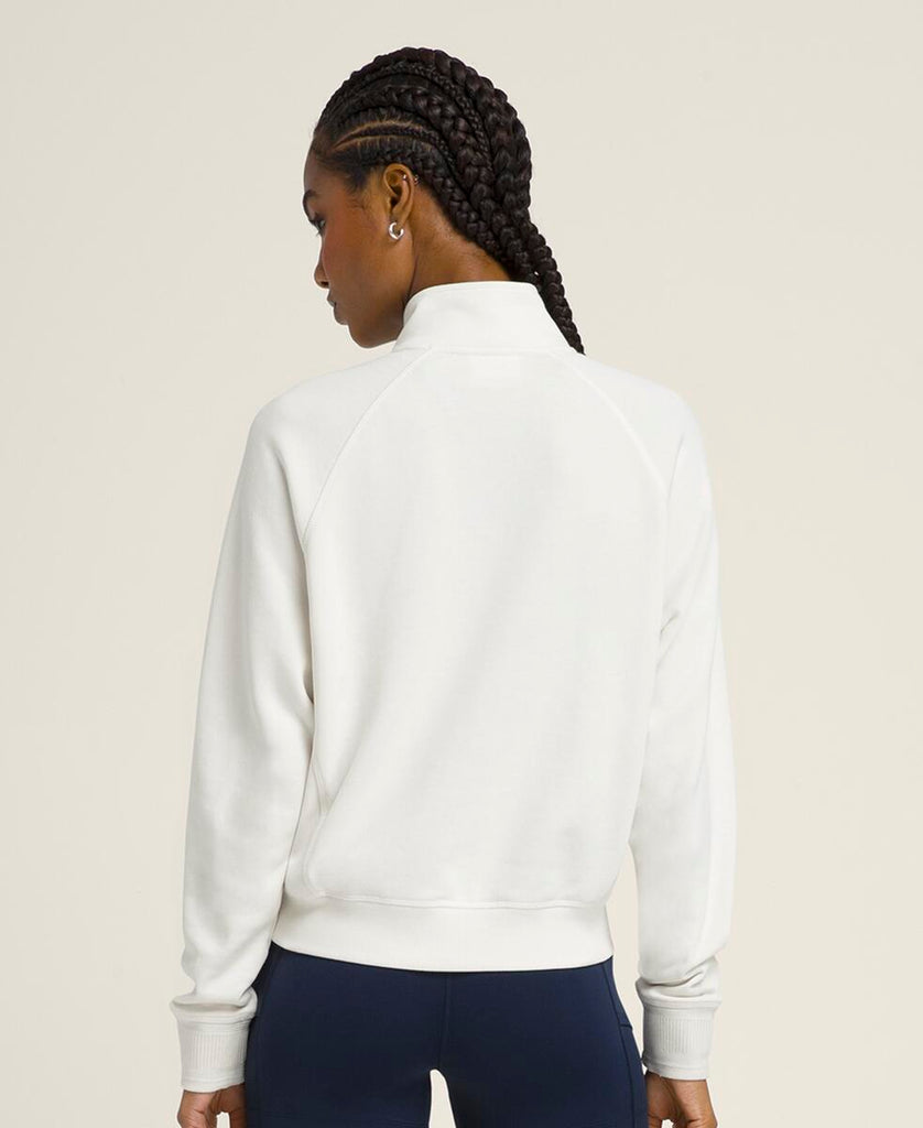 アクティビティ後のクールダウンに最適な1枚。軽くて柔らかなスウェット素材が爽やかな着心地をキープする。ハーフジッパーにより容易な通気性の確保が可能に。