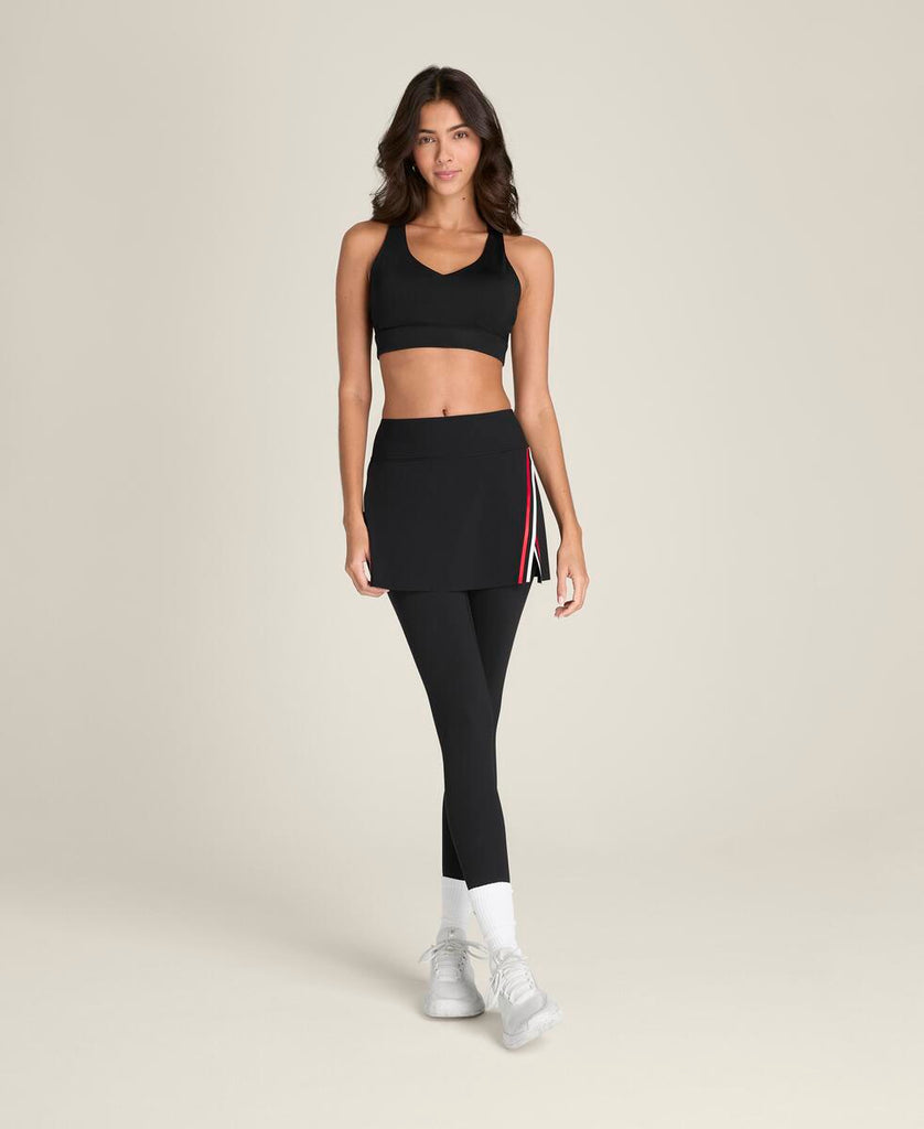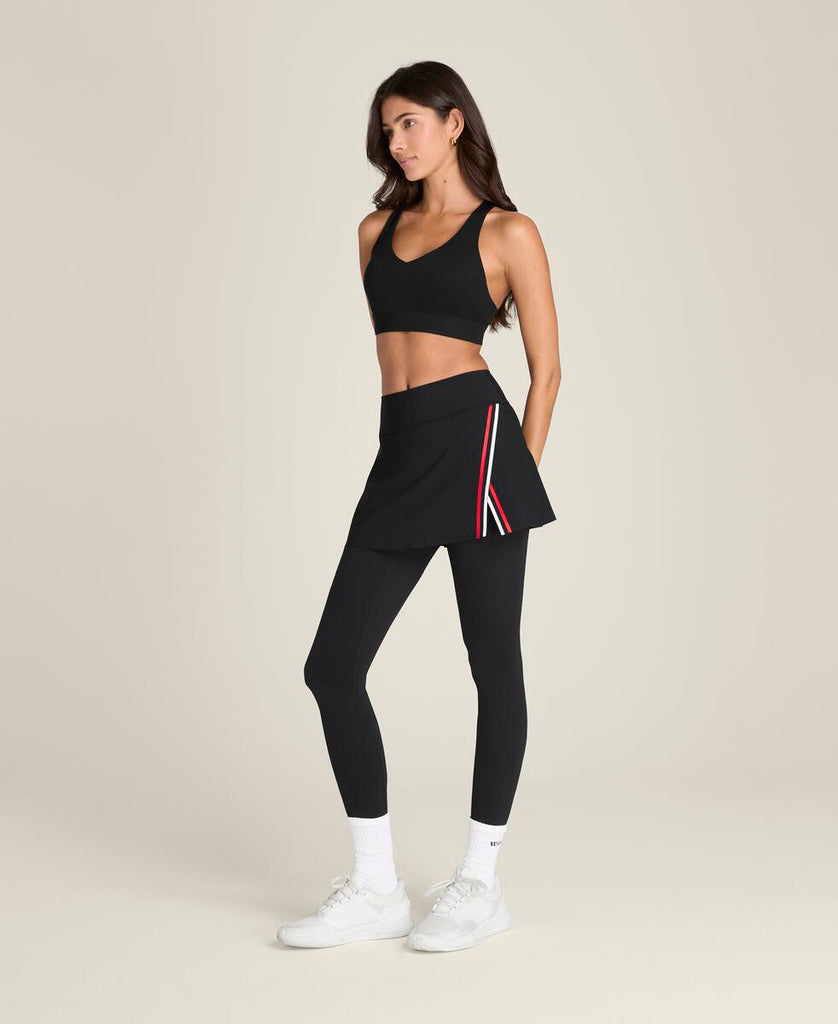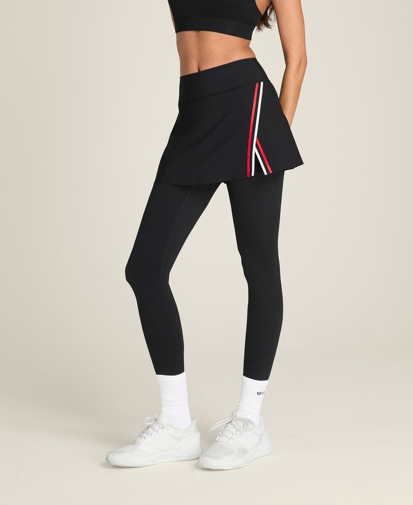 スタイリッシュで伸縮性のあるスプリットスカートと、速乾性に優れたやや短めのタイツを組み合わせ、動きやすさと快適さを両立。脚のポケットには、予備のボールを収納可能。