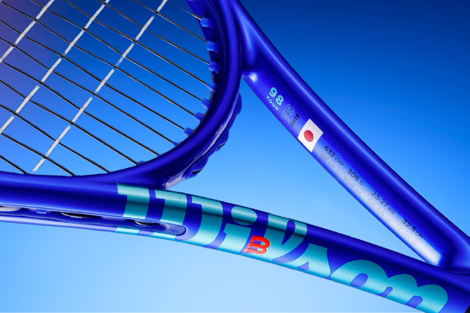 薄いフレーム厚でレクタングル形状のハンマーバランス設計。スウィングからの走り出しは格段に高い弾道で、相手コートでのバウンド後の伸びを加速させる。98in2のフェイスサイズに18x19のストリングパターンを採用することで、よりパワーは向上し、スイートエリアの拡大にも成功。錦織圭が世界で勝つためにたどり着いた答え「日本発・世界基準の侍・スペック」。